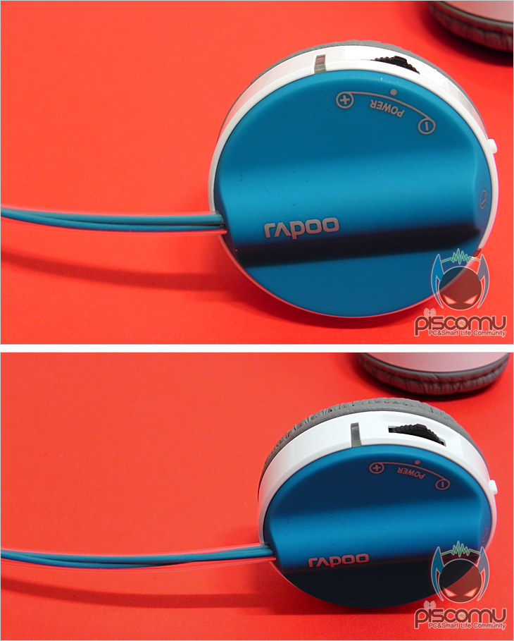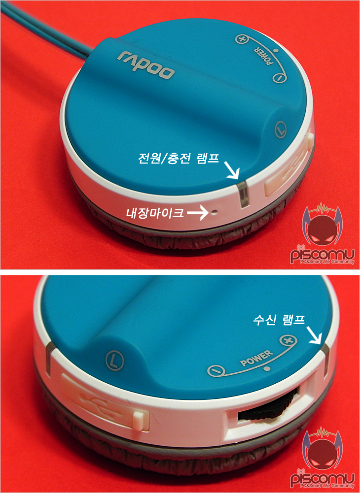 H6020을 살펴보면, 색상부분(블루)은 러버(고무)재질로 부드러운 감촉을 줍니다. 그리고, 이어(EAR) 부분은 90° 회전이 됩니다. 그리고, 좌우 명칭을 표기해놔서 사용시 착용방향을 알 수 있겠습니다. 둥근 디자인을 가진 이어(EAR)부분 왼쪽에는 내장 마이크를 비롯해, 전원/충전 상태 램프, USB충전케이블 포트, 전원/볼륨 조절 컨트롤, 수신 램프가 배치되어 있습니다. 참고로, 충전시 램프 상태는 RED, 충전이 완료되면 Green으로 표기됩니다. 안쪽에는 푹신한 쿠션처리로 오랜 시간 착용해도 피로나 귀가 아프지 않도록 했습니다. 밴드 부분은 이어(EAR)부분과 색상을 동일하게 맞추었으며, 외곽을 튜브처리해 밴드 손상을 방지해주겠습니다. 그리고, 이어(EAR)을 수직으로 세운 상태에선 밴드 길이를 사용자가 조절할 수 있는데, 최대 약 30mm정도 길이를 늘릴 수 있겠습니다.