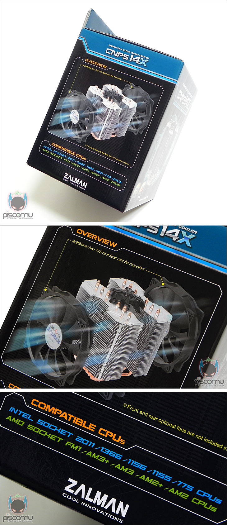 앞서 Deepcool(딥쿨)사의 제품을 통해 만났듯이, 올해 CPU쿨러 시장의 새로운 트랜드는 바로 트윈 타워 구조의 트리플 팬 쿨러입니다. 점점 출시가 늘어나고 있는 시점에 국내에서 냉각 솔루션으로 유명한 ㈜잘만테크 역시 작년 출시한 첫 트리플 팬 쿨러 CNPS 12X의 후속 모델을 이번에 출시했습니다. 바로, “CNPS 14X”입니다. 그럼, 140mm로 강화된 잘만의 두 번째 트윈 타워 트리플 팬 쿨러 CNPS 14X를 살펴보도록 하겠습니다.