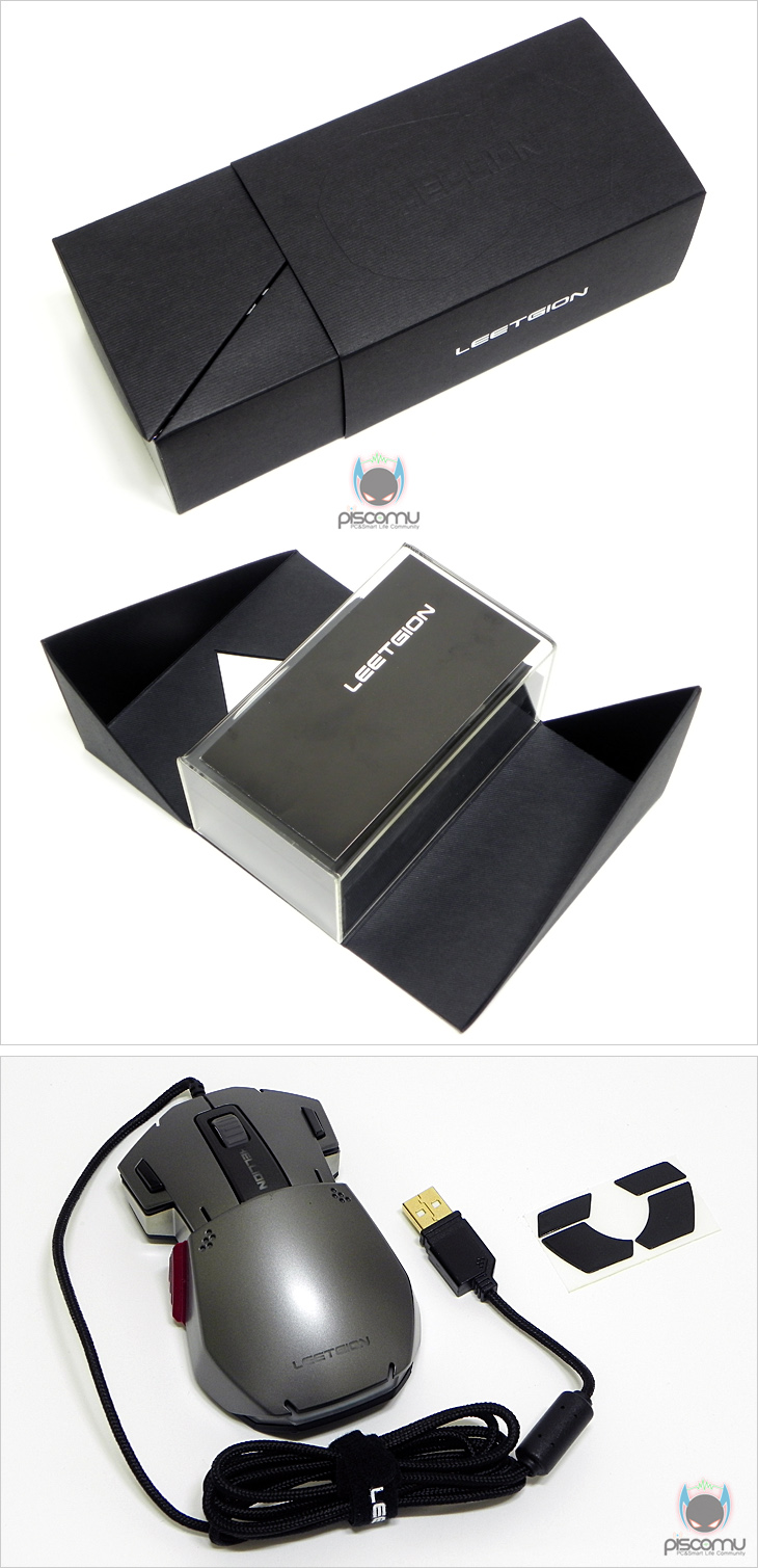 HELLION(헬리온)의 제품 팩키지 형태는 상당히 고급스럽습니다. 마우스 제품이란 느낌보다는 마치 휴대기기 제품 팩키지 형태를 갖추고 있습니다. 첫 제품인만큼 상당히 꼼꼼히 신경 쓴 모습을 느낄 수 있습니다. 박스 측면에는 브랜드명과 후에 확인하겠지만, 마우스 측면 버튼을 외부로 노출 공개해주고 있겠습니다. 제품 포장 역시 에사롭지 않습니다. 마우스 제품치고는 상당히 고급스럽게 아크릴 커버 케이스 형태로 포장을 해놨습니다. 케이스 위에는 설명서를 올려놨습니다. 제품 구성은 간단하게 마우스와 추가로 지원되는 테프론 피트로 이루어져 있습니다.