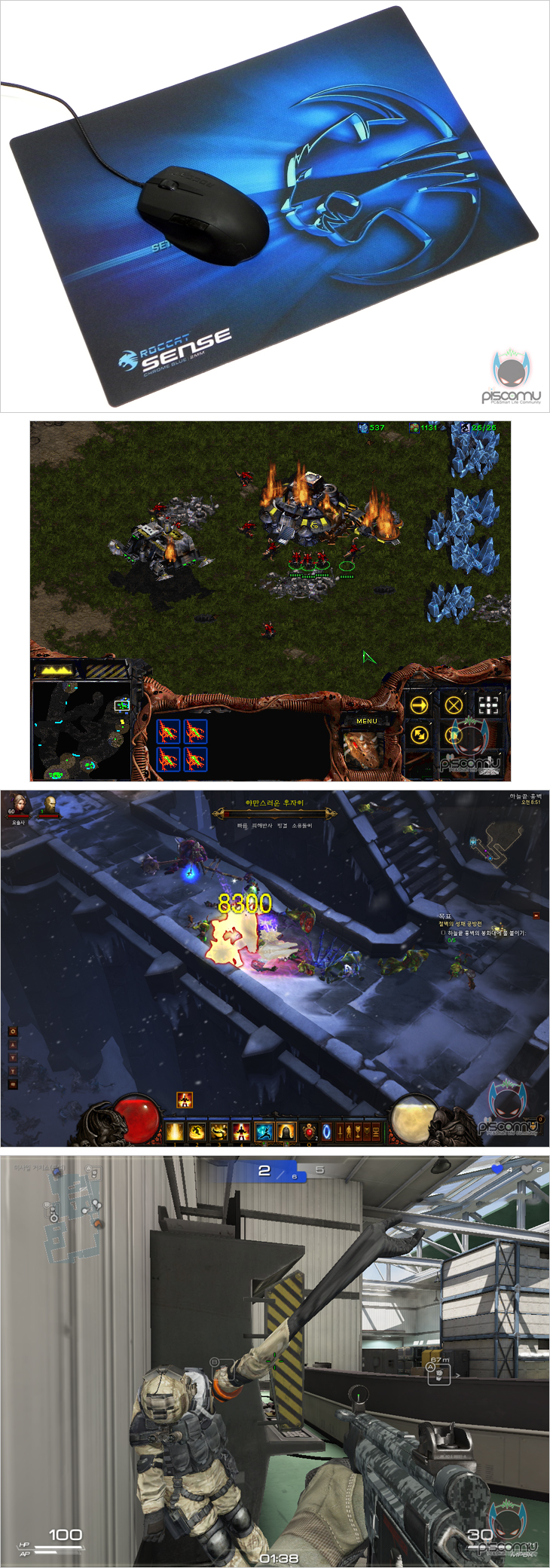 실제, 크롬 블루를 사용해 마우스 위주를 게임을 해본 결과 일반 패브릭 제품보다는 좀 더 슬라이딩 느낌이 매끄러운 것을 느낄 수 있었습니다. 이는 역시 특수 코팅 적용에 따른 마우스 마찰력이 적어서 오는 효과라 할 수 있겠습니다. 다만, 얇은 두께에 따른 쿠션감이 적기 때문에 사용자가 쿠션감을 선호한다면 아쉬움부분을 느낄 수도 있겠습니다. 다만, 마우스 움직임에 있어서는 다른 패브릭 제품보다 움직임이 빠른 것을 느낄 수 있겠습니다.