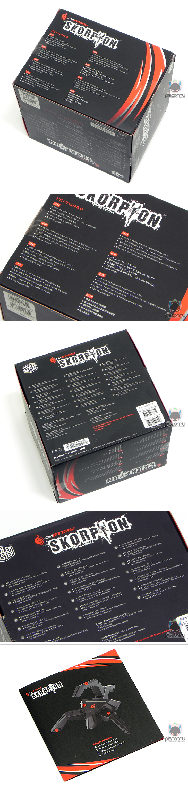 스콜피온(Skorpion) 제품 팩키지 형태는 액세서리 제품답게 내부에 포장된 제품을 노출시켜 소비자가 구입 전 제품 디자인을 확인할 수 있게 해주고 있습니다. 또한, 추가적으로 제품 박스를 통해 제품의 특징 정보를 얻을 수 있는데, 제품 부위별 소개와 기능을 중점으로 다루고 있겠습니다. 각 특징들은 곧 뒤에서 직접 제품을 살펴보면서 확인해보도록 하겠습니다. 또한, 각 나라별 언어로도 제품 소개를 하고 있어 소비자가 쉽게 제품에 대한 정보를 얻을 수 있겠습니다. 마우스 거치대 외 구성품은 간단하게 설명서 및 보증서만 제공되겠습니다.