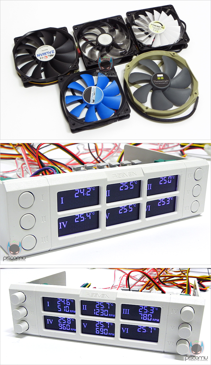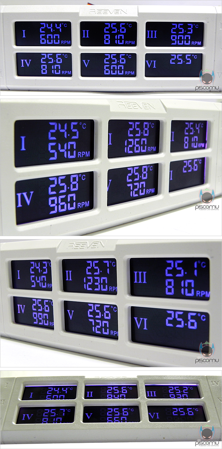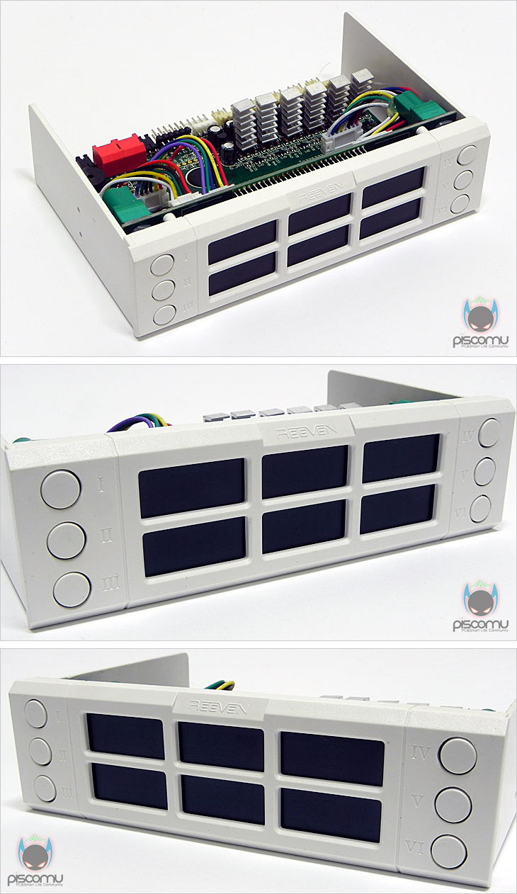 해외에서도 최근 본격적인 활동을 시작한 Reeven의 첫 팬 컨트롤러 제품 SIX EYES는 기존의 팬 컨트롤러 제품들의 아쉬움을 많이 채워주는 제품입니다. 가장 대표적으로 노브를 푸쉬(Push) 형태로 갖추어 전면 도어 PC케이스에서도 장착이 가능하다라는 점, 전체적으로 LCD 시야각이 넓다라는 점을 들 수 있습니다. 여기에 7가지 색상 지원과 6개의 온도센서, 6개의 팬 속도조절, 온도 알람 지원까지 기능부분에서도 다양하게 잘 갖추고 있습니다. 조금 아쉽다면, 색상별로 LCD 밝기 차이가 조금씩 있다라는 점을 들 수 있습니다. 하지만, 자사의 첫 제품으로썬 경쟁사 제품에 뒤지지 않는 매리트 있는 제품이라 튜닝 제품에 관심 있는 소비자라면, 하나쯤 가지고 싶은 제품이라 생각됩니다.