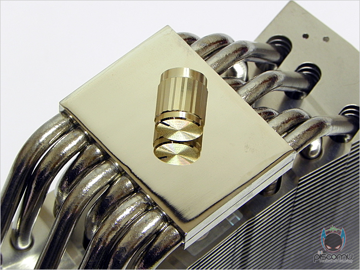 그리고, 쿨러에서 이번 Archon(아콘) SB-E의 가장 큰 특징을 확인할 수 있는데, 바로, 히트파이프(Heat-Pipe)입니다. 기존 Archon에선 지름 6mm 히트파이프가 6개 적용되었고, 이번 모델에선 2개가 더 추가된 8개의 히트파이프가 적용되었습니다. 또한, 기존 방식대로 U자형 구조를 가졌기 때문에 기존12개 효과에서 16개 효과로 늘어난 이점도 있겠습니다. 그리고, 방열핀의 총 개수는 44개입니다.