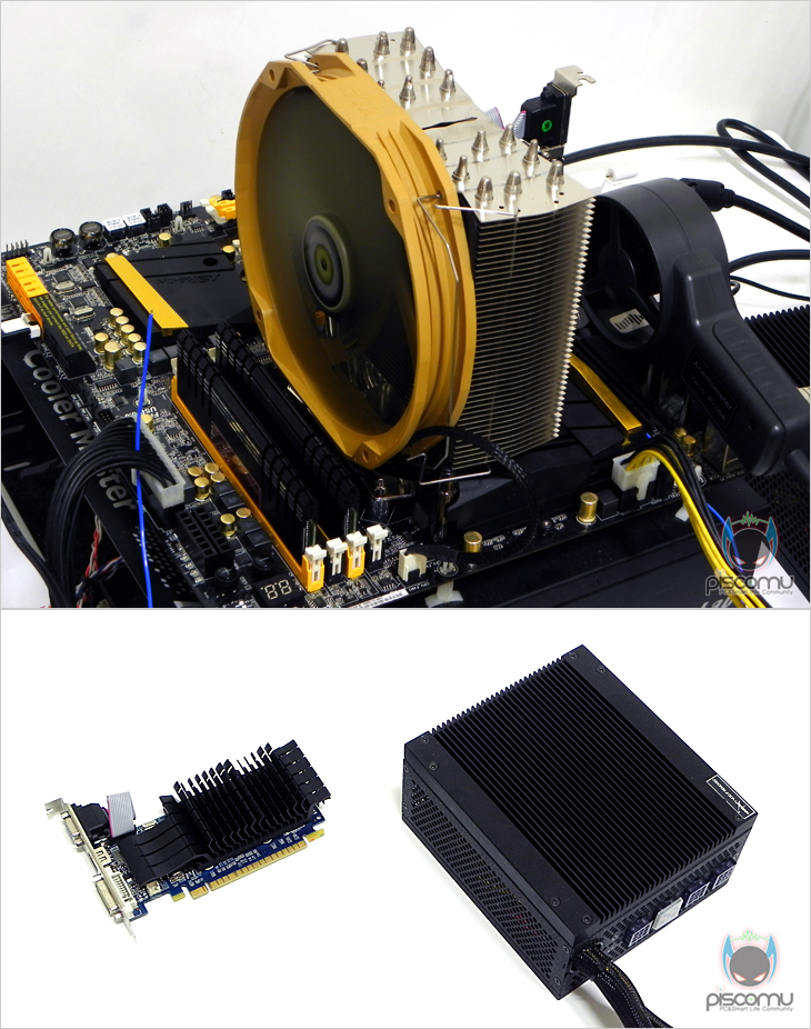 이제, Archon(아콘) SB-E의 성능을 확인해 보도록 하겠습니다. 프로세서는 인텔 아이비 브릿지 i5-3570K이며, 타워형 쿨러이기 때문에, 바로 오버클럭 4.5GHz상태에서 프로세서 냉각 성능과 전원부에 주는 쿨링효과, 팬 소음, 팬 풍량을 측정해 보도록 하겠습니다. 실내온도와 전면에서 들어가는 공기의 온도를 최대한 비교모델들과 비슷한 상황에서 유지해 진행이 되었습니다. 팬 작동은 PWM 방식 그대로 적용했습니다.