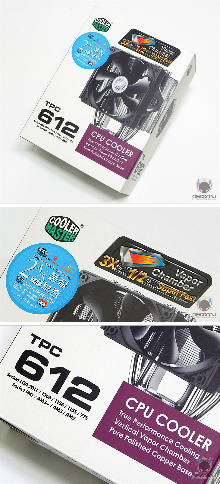 쿨러마스터는 올해 세계 최초로 CPU쿨러에 증기 챔버 쿨링솔루션을 적용한 타워형 쿨러 TPC612를 선보였습니다. 총 6개의 히트파이프에 증기챔버를 함께 적용한 TPC812는 성능에서 좋은 모습을 보여줬습니다. 그리고, 이번에는 또다른 증기 챔버 타워형 쿨러를 선보이는 바로. “TPC612”가 그 주인공입니다. 그럼, TPC812의 바로 한 단계 아래 모델로 짐작되는 TPC612를 만나보도록 하겠습니다.
