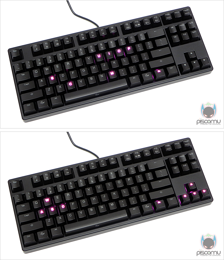 이제, 직접 DK9087 Shine 2를 사용해 보겠습니다. 별도의 드라이버 설치없이 USB 인터페이스를 연결하면 바로 사용이 가능합니다. 앞서 언급한 LED 백라이트 지원으로 LED색상을 확인할 수 있는데, 국내에는 흰색으로 출시되었지만, 피스커뮤에선 특별히 국내에서 보기 드문 핑크색으로 주문제작 진행이 되었습니다. 또한, LED 백라이트의 6가지 기능들은 사용자 취향에 따라 원하는 설정 적용해 사용하면 되겠습니다. 특히, 키 타이핑마다 활성화되는 LED 기능은 제조사의 차별화 특화 기능으로 소비자들에게 매리트로 다가올 수 있는 부분이 되겠습니다. 또한, LED 상태를 사용자가 원하는 키에만 적용해 작동할 수 있게 해주는 커스텀 LED 백라이트 모드 역시 경쟁사 제품들과 차별화를 주는 제조사만의 특화 기능이기 때문에 소비자들에게 한 가지 더 매리트 요소를 가미해 주겠습니다. 이번엔 키보드 위주의 게임에서 사용을 해보았습니다. 동시 키 지원이 필요한 게임에서 플레이 해 본 결과 동시 키 입력이 잘 인식 되었으며, 반응 인식도 즉각적으로 보여주는 편이라 게임 플레이에 있어 큰 불편함은 없겠습니다. 물론, 텐키리스를 선호하지 않는 소비자입장에서 불편사항이 발생하겠지만, 게임시 기본 방향이 기본 방향키를 기본으로 두고 있기 때문에, 게임 플레이에 있어서는 전체적으로 큰 불편함은 없을 것으로 생각됩니다. 끝으로, 텍스트 타이핑으로 키 압력과 소음을 느껴 본 결과, 해당 진행 모델 스위치가 갈축이라는 점에서 청축과 적축 사이로 평가되는 갈축만의 특징 청축보다 타이핑 소음은 낮으면서 키 압력은 적축만큼 부드러우면서 가벼움을 잘 전달해주는 것을 느낄 수 있겠습니다.