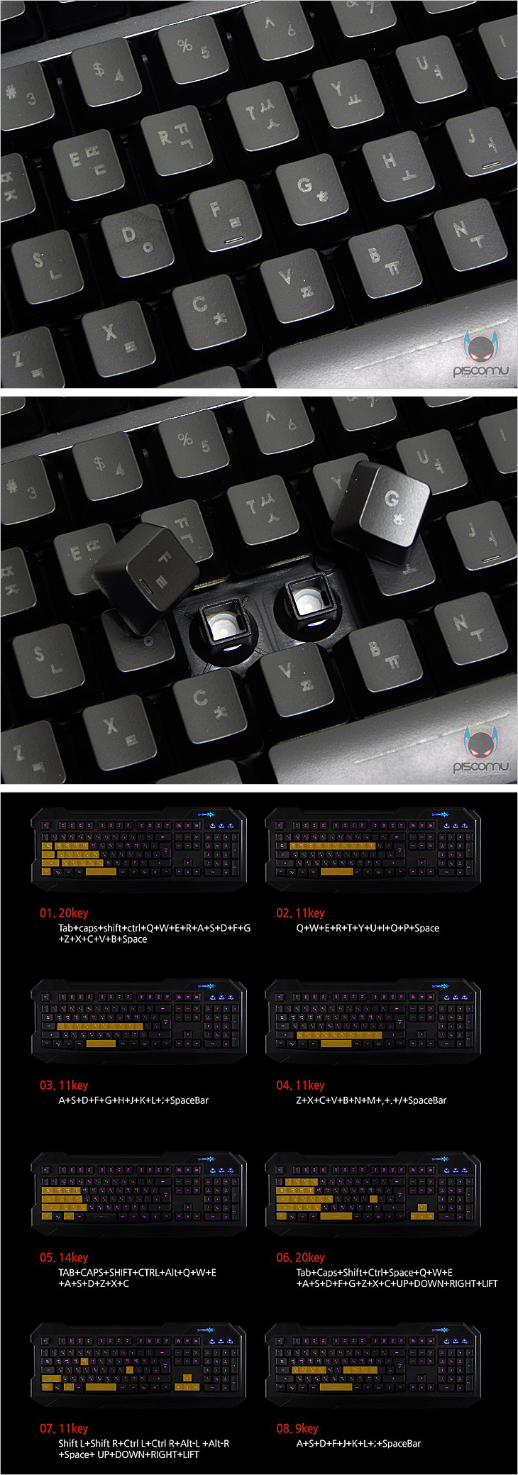 | 부가 지원 | 3색 LED 지원, 반복속도 조절, 미디어 핫 키 지원, Anti-Ghost 지원 |
