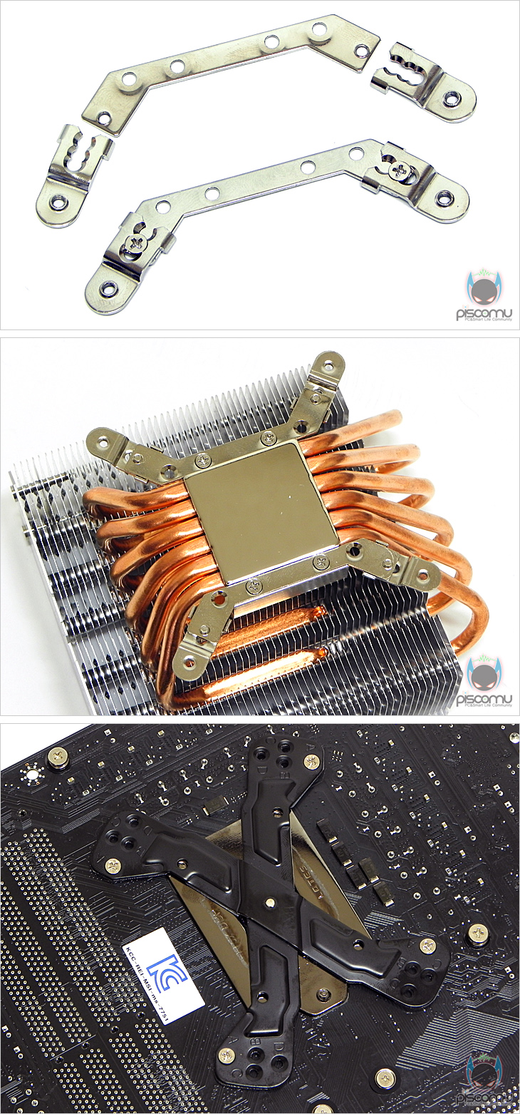 직접, ARCZIEL 12을 사용해 보았습니다. 인텔용과 AMD용 중 자신이 사용하는 프로세서에 맞춰 마운트를 선택해줍니다 인텔 경우 마운트와 클립을 소켓 지원에 맞춰 결합을 한 번 더 해줍니다. 그리고, 결합한 후 쿨러에 마운트를 결합해줍니다. 그리고 나서, 메인보드를 그대로 뒤집어 올린 후 후면에서 공용 백플레이트를 역시 소켓 지원에 맞춰 설정하고, 최종적으로 스크류를 사용해 쿨러와 결합 장착을 마무리하면 되겠습니다.