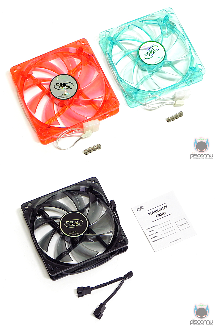 새롭게 출시된 X-FAN 2종 모델의 가장 큰 특징은 앞에서 말했듯이 베젤/블레이드 색상과 LED색상이 동일하다라는 점입니다. 이런 UV처리된 팬은 어두운 곳에서 좀 더 그 효과가 높기 때문에 최근 PC케이스들이 스모크 아크릴 윈도우판을 적용하는 경우가 많아져서 튜닝효과가 좋은 팬이라 할 수 있겠습니다. Ice Blade FAN 역시 CPU쿨러와 케이스 팬으로 모두 사용이 가능하면서, 블루 LED를 갖추고 있어, CPU쿨러에 튜닝효과를 줄 수 있습니다. 또한, Ice Blade FAN은 Y자형 케이블을 기본 제품해주기 때문에 쿨러에 듀얼 팬 장착에 대한 별도의 케이블 비용이 필요없겠습니다. 제품 모두 풍량이 많은 편이고, 소음 또한 무난해, 모두 1만원도 안되는 저렴한 가격으로 출시했다라는 점에서 케이스나 쿨러를 가장 간단히 튜닝할 수 있는 팬 교체로는 가격대 만족도가 있는 모델이라 생각됩니다.