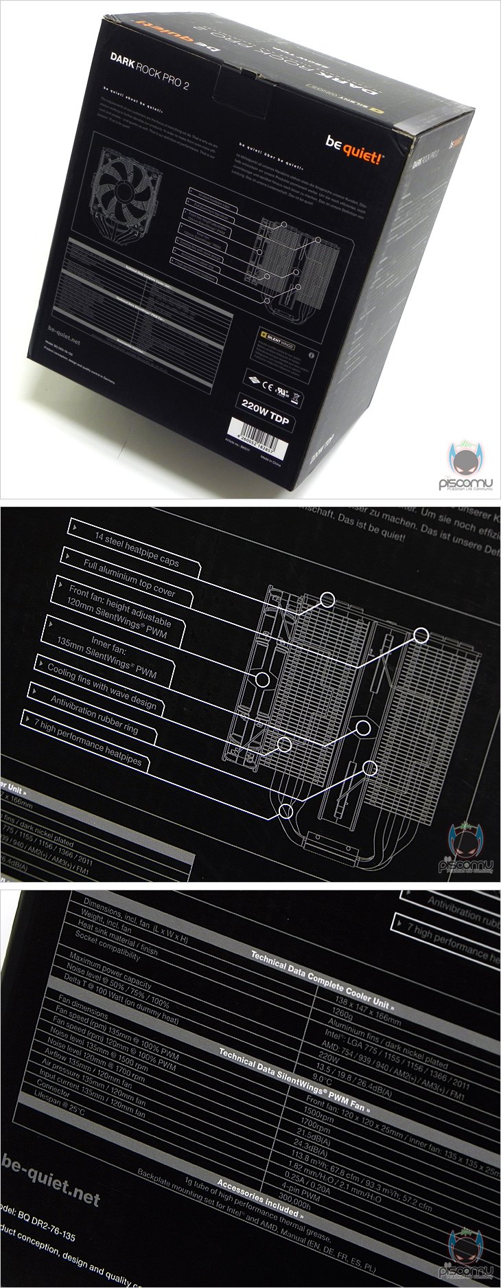 국내에는 잘 알려지지 않았지만, 유럽 PC시장에선 꽤나 유명한 브랜드가 있습니다. 바로, Be Quiet입니다. Be Quiet는 독일에 있는 냉각 솔루션 및 파워서플라이 전문업체로 시각적인 퀄리티가 상당히 높은 제품들을 선보이고 있습니다. 특히, CPU쿨러(Cooler) 라인업에는 타워형인 Dark Rock와 플라워형인 Shadow Rock 라인업이 있는데, 작년 트윈 타워형 쿨러가 본격적으로 출시될 때에 Be Quiet도 자사의 첫 트윈 타워형 쿨러로 Dark Rock 쿨러 라인업에 ‘Dark Rock Pro2’라는 모델을 출시했습니다. 엄밀히 말하면, Dark Rock 2의 후속이자 상위 모델이기도 한데, 이번 시간은 이 Be Quiet의 트윈 타워형 쿨러 Dark Rock Pro2를 만나보도록 하겠습니다.
