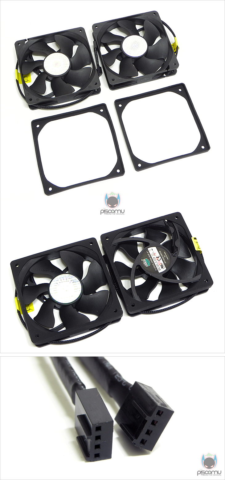 끝으로, 기본 제공되는 120mm 팬 역시 Seidon 120M에 제공되는 팬과 동일한 팬으로, 속도 범위는 600~2400RPM을 가지겠습니다. 하지만, 이전 모델에서 지적된 팬 소음 부분을 줄이기 위해 추가로 지원된 방진 패드도 있어, 소음감소 부분을 기대해볼 수 있겠습니다. 그리고, 팬 연결 작동방식은 PWM방식이 되겠습니다.