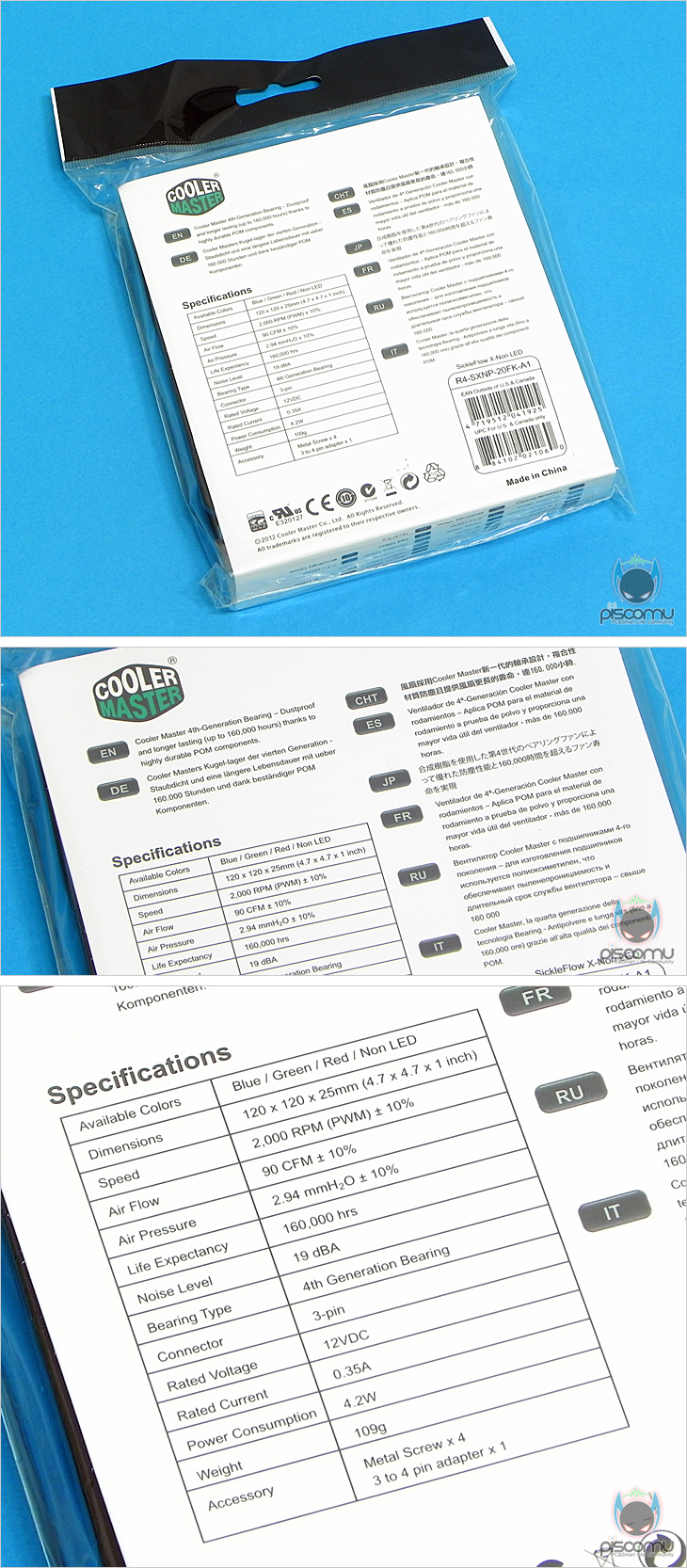 글로벌 종합하드웨어인 ㈜쿨러마스터(http://www.coolermaster.co.kr/)는 그 동안 케이스와 쿨러 등 다양한 신제품을 보일 때, 케이스 팬도 간간히 선을 보였습니다. 그 중 LED팬으로 국내에선 Silent Fan시리즈가 유일하겠습니다. 그리고, 이번에 오랜만에 LED팬을 선보이는데, 바로 SickleFlow시리즈가 되겠습니다. 특히, 이번 시리즈는 3가지 컨셉으로 출시가 되었는데, 속도에 따른 1200RPM과 2000RPM용, 그리고 베어링 수명을 늘린 4세대 베어링이 적용된 “SickleFlow X”가 있겠습니다. 오늘이 이 중 4세대 베어링이 적용된 모델 SickleFlow X를 살펴보도록 하겠습니다.