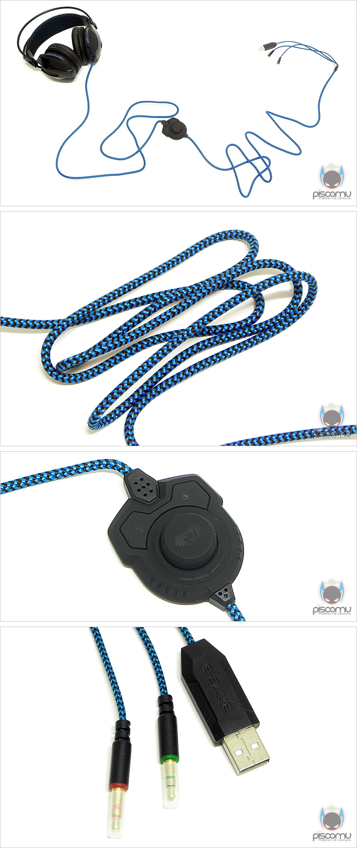 이어(EAR) 안쪽은 제품 특징에서 소개했듯, 귀를 전체 감싸주는 밀폐식 형태로 외곽 재질은 일반적인 고무재질을 적용했으며, 사운드가 출력되는 안쪽에는 앞서 헤어밴드와 같은 천 재질을 적용했습니다. 그리고, 스펙 사양에서 언급했듯, 내부에는 50mmm 드라이버 유닛이 들어있겠습니다. 케이블과 컨트롤러, 포트부분은 이전 모델과 동일하겠습니다. 우선 케이블 길이는 컨트롤러까지 약 1.25m가 되겠으며, 컨트롤러에서 포트까지는 약 1.54m로 동일합니다. 그리고, 케이블 전체 슬리빙 처리와 색상도 MAZER TYPE-X EHS001와 동일하겠습니다. 또한, 컨트롤러와 포트 지원 역시도 동일한 형태를 가졌으며, 컨트롤러의 로고 부분만 차이가 있겠습니다.
