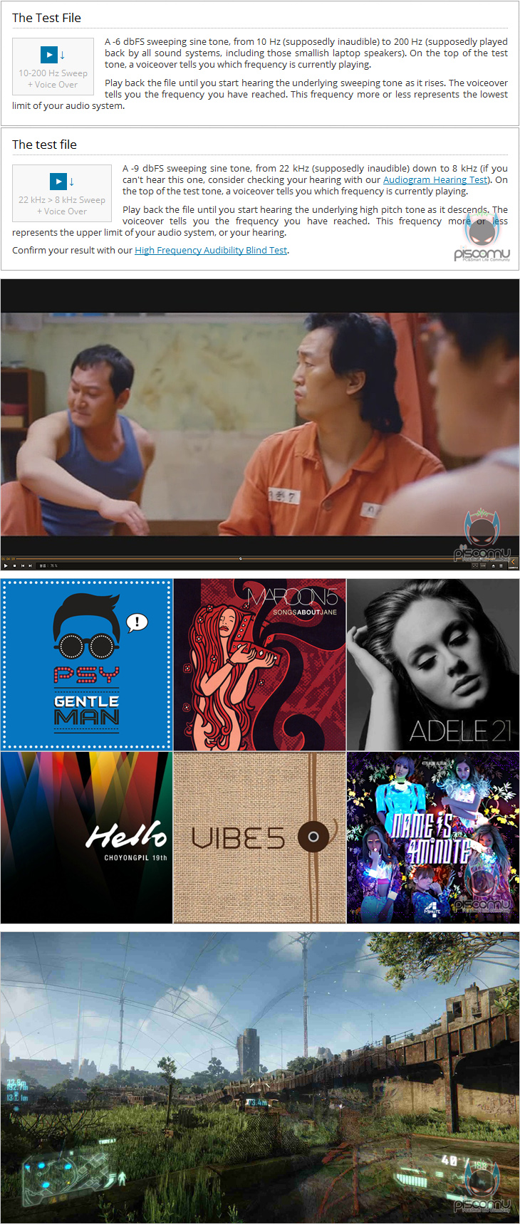 이번엔 헤드셋 연결을 통해 사운드 출력 음질을 직접 느껴보는데, 그전에 BOS-S500D SoundBook 자체의 볼륨 조절 단계를 버튼으로 확인한 결과 총 32단계인 것을 확인할 수 있었습니다. 물론, 볼륨 조절 시 버튼을 계속 누르고 있으면, 자동으로 높낮이 조절이 되기 때문에, 굳이 한 번씩 누를 필요는 없습니다. 그리고, 주파수 응답 대역별 음원으로 사운드를 들어 본 결과, BOS-S500D SoundBook에서 지원하는 범위에서 사운드가 잘 출력되는 것을 확인할 수 있었고, 최소 대역이 90Hz이기 때문에 저음보다는 중저음부터 사운드가 출력되는 느낌을 잘 받습니다. 실제, SD/USB 메모리를 사용해 재생할 시 제일 낮은 볼륨 상태에서도 저음보다는 조금 큰 중저음으로 들리는 수준입니다. 이 외, 동영상이나 음악, 게임에서 들려주는 사운드는 전체적으로 선명하고 깔끔하게 들려주는 느낌이고, 고음에서 찢어지는 잡음도 없어, 사운드 출력은 만족스럽다 할 수 있습니다.