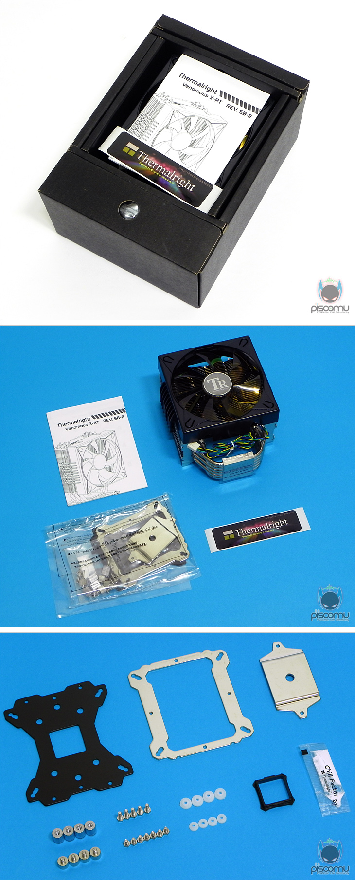 냉각 솔루션 전문업체인 ㈜써멀라이트(Thermalright)는 그 동안 오랫동안 인기를 얻는 CPU쿨러 모델을 배출했는데, 그 중 하나가 바로 Venomous-X 시리즈(Series)라 할 수 있습니다. 오리지널부터 블랙(Black), 그리고 저소음(Silent)까지 다양하게 선을 보였는데, 가장 마지막 모델은 기본 팬이 제공되는 'Venomous-X RT SB-E'가 되겠습니다. 작년에 출시된 모델이지만, 여전히 명성이 있는 모델이고, 피스커뮤에서 다루지 않았기 때문에 이번 시간 Venomous-X RT SB-E를 만나보겠습니다.