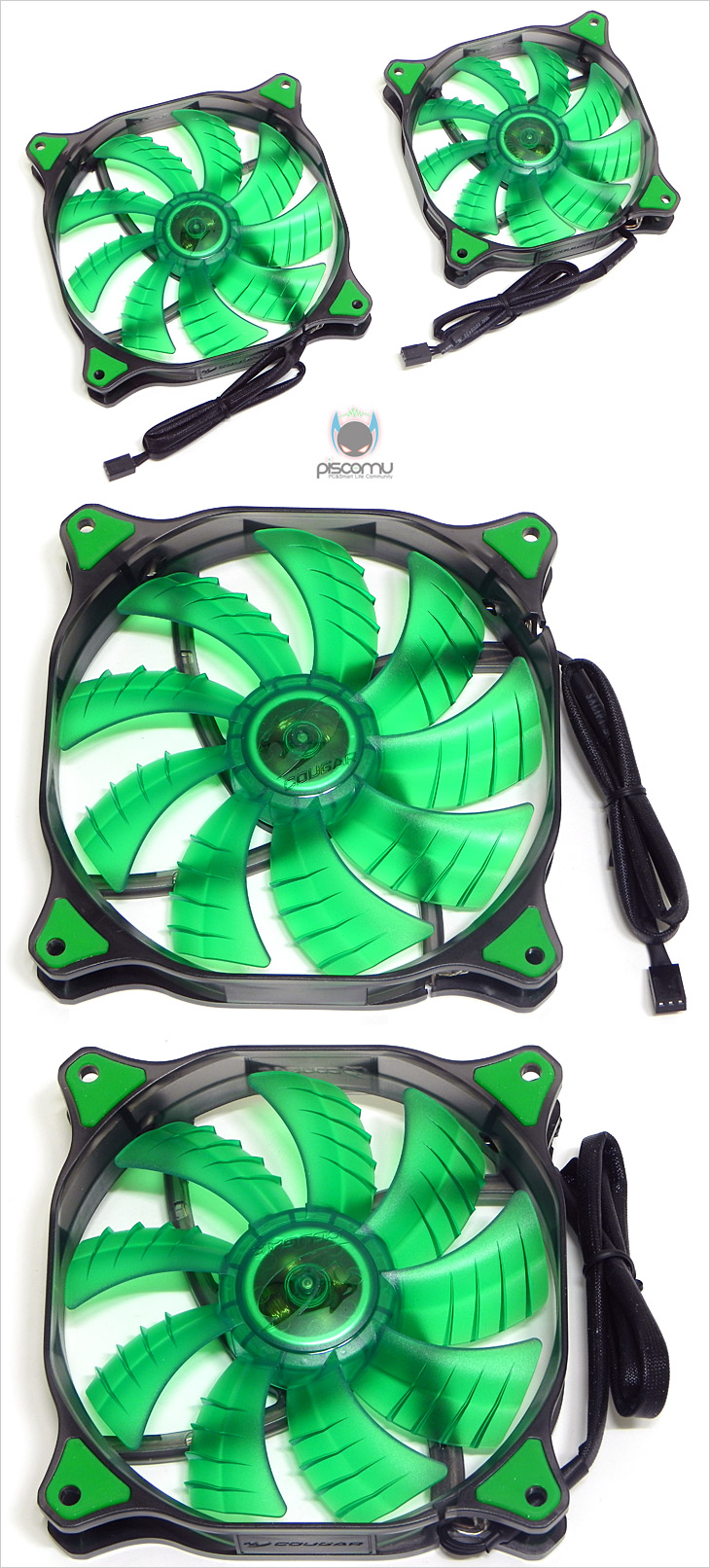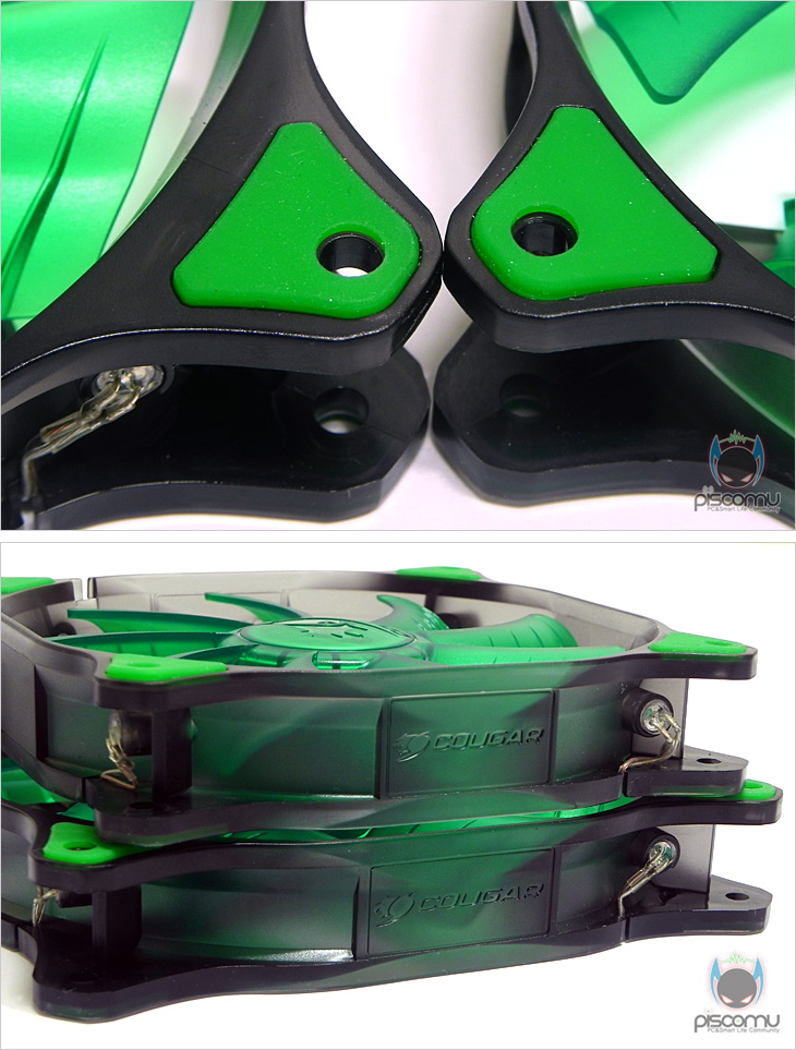 COUGAR 자사 첫 쿨링팬인 DUAL-X는 속도대비 많은 풍량과 튜닝효과가 강해 만족도가 나름 높은 제품이라 할 수 있습니다. 첫 제품임에도 풍량을 높이기 위한 블레이드 디자인과 튜닝효과를 높이기 위한 블레이드 색상과 LED색상의 통일감은 자사의 그 동안 케이스와 파워서플라이가 기술력으로 인증을 받아 인지도가 높았던 만큼, 세심한 노력을 기울였음을 엿볼 수 있습니다. 또한, 국내에선 화이트 모델까지 출시가 되어서, 화이트 LED팬을 갈망하던 소비자들에겐 더 반가운 소식이라 할 수 있습니다. 그 동안 PC케이스 튜닝을 위해 LED 쿨링팬을 고려하고 있던 소비자라면, 레드, 블루는 기본에 그린과 화이트까지 갖추고 있는 COUGAR의 DUAL-X에 관심을 가져보면 좋을 것 같습니다.