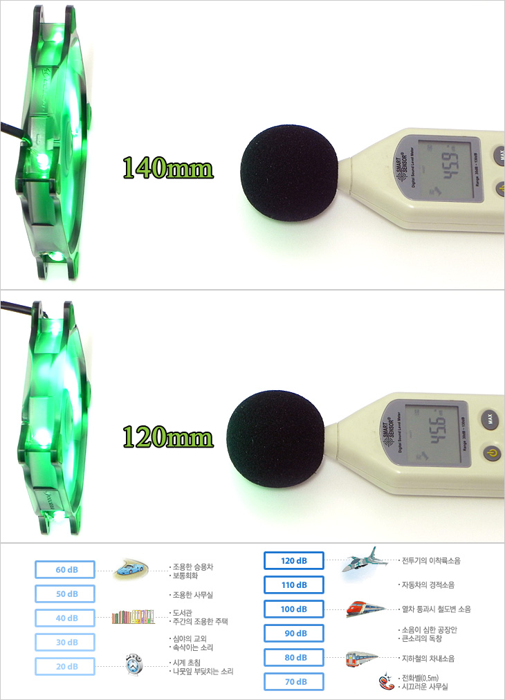 | 속도 | 120mm | 1200RPM | 140mm | 1000RPM |