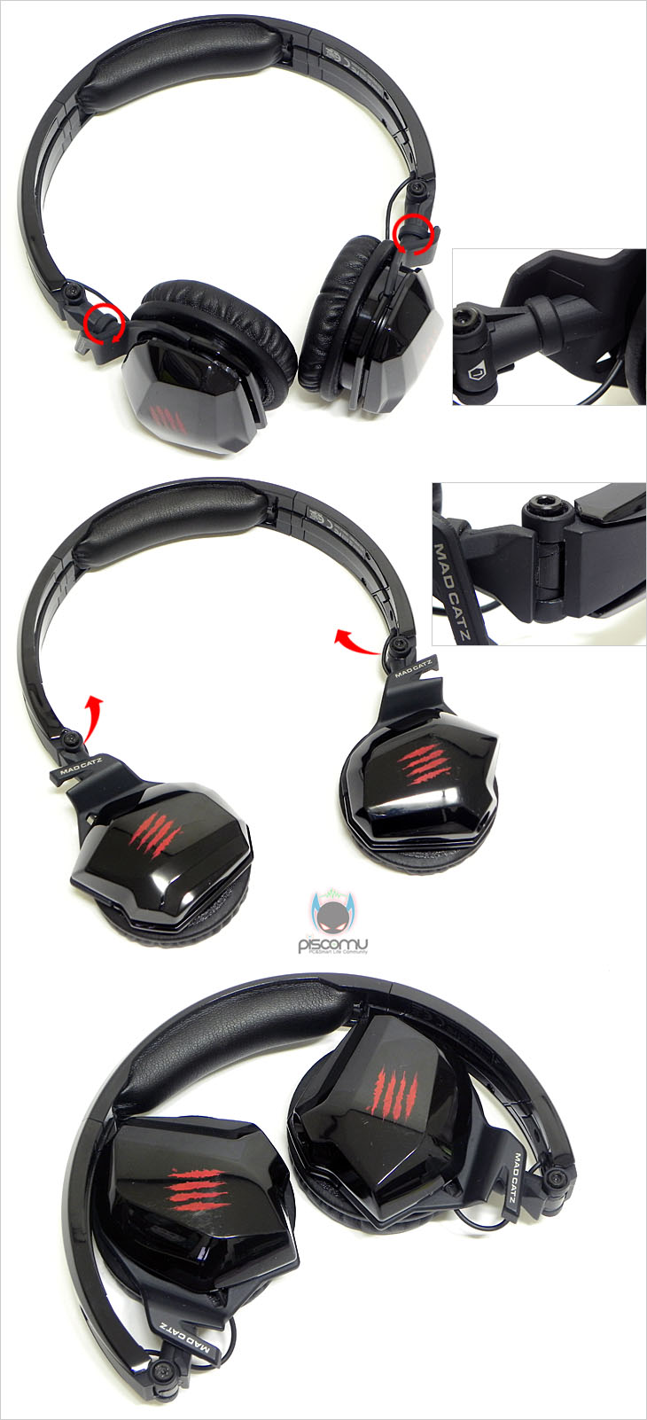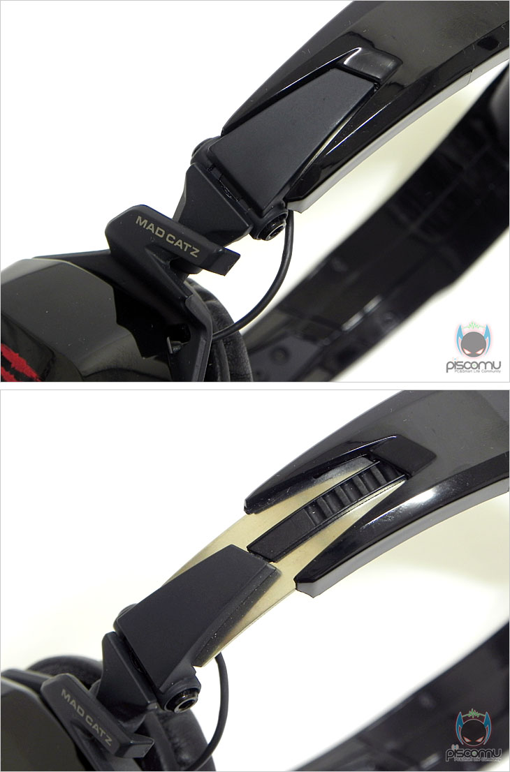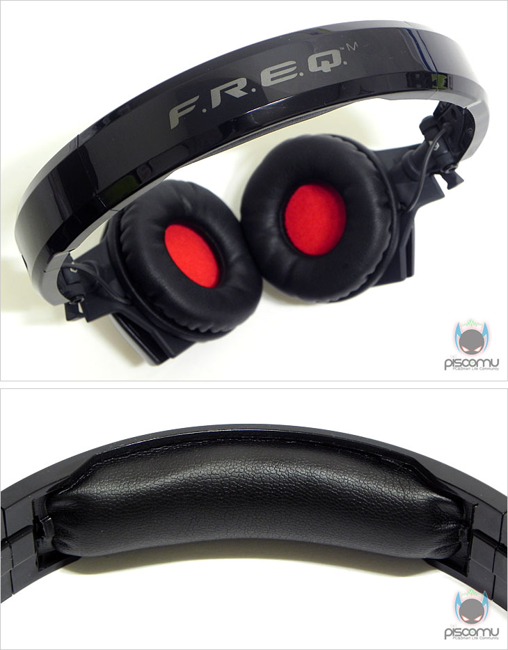 이제, F.R.E.Q-M를 살펴보는데, F.R.E.Q-M는 출시와 동시에 4가지 컬러 블랙, 레드, 화이트, 무광 블랙으로 출시 되었습니다. 소비자가 원하는 색상을 선택해 구입할 수 있습니다. F.R.E.Q-M는 모바일 헤드셋을 기본 컨셉으로 잡고 있어, 앞서 제공되는 전용 파우치에 휴대할 수 있게, 헤드셋을 접어서 크기를 축소할 수 있는데, 이어(EAR) 부분과 헤어밴드와 이어(EAR) 연결부분에 관절 적용이 되어 있습니다. 부분적으로 살펴보면, 먼저 헤어밴드 부분의 외부쪽은 모두 광택처리가 적용되어 있으며, 모델명이 새겨져 있습니다. 그리고, 밴드 안쪽에는 착용시 편안한 착용감을 위해 쿠션 적용과 마감처리에 인조가죽 재질을 적용했습니다. 또한, 밴드 양쪽에는 사람 머리 크기에 따른 착용 지원을 위해 길이 조절을 할 수 있는데, 최대 약 40mm까지 늘어납니다. 이어(EAR) 부분을 살펴보면, 외부쪽은 헤어밴드와 마찬가지로 광택처리가 되어 있으며, 제조사 엠블럼이 생겨져있습니다. 또한, 착용 시 이어(EAR) 각도 조절을 위한 처리도 적용된 것을 확인할 수 있습니다. 그리고, 왼쪽 이어(EAR) 아랫부분에는 제공되는 오디오 케이블과 연결되는 포트부분을 확인할 수 있습니다.