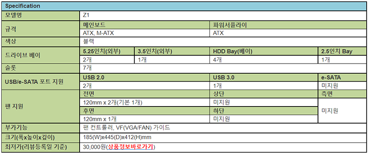 잘만테크의 PC케이스 미들타워 라인업 중 가장 많은 시리즈 모델을 가진 Z시리즈는 그만큼 잘만테크의 주력 모델이라 할 수 있는데, 드디어 막내 모델이라 할 수 있는 Z1까지 출시가 되었습니다. 비록 모델명으로 막내라 불리우지만, 내부 구조는 실속 있게, 그리고 트랜드에 맞춰 잘 갖추어져 있어, 3만원대 저가형 케이스로 느끼기엔 매력이 높은 제품입니다. 외부 베이 커버 분리, 튼튼한 툴-레스 장치, 그리고 Z시리즈 특유의 잘 설계된 선정리 공간 처리까지 잘 갖추고 있습니다. 물론, 파워서플라이가 하단에 장착되는 구조라 케이스 상단 에어홀 처리가 없다라는 점이 조금 아쉽긴 하지만, 다른 경쟁 모델에서도 흔히 보는 모습이기 때문에 큰 아쉬움은 아닙니다. 또한, 그 동안의 Z시리즈와 마찬가지로 이번 Z1 역시 0.6~0.7T 두께의 샤시를 사용했기 때문에, 저가형 케이스로썬 조금 묵직한 느낌도 있어, 튼튼한 느낌을 줍니다. Z시리즈의 막내라지만, 결코 막내 같지 않은 케이스라 하반기 저가형 케이스 시장에서 좋은 반응을 기대해봅니다.