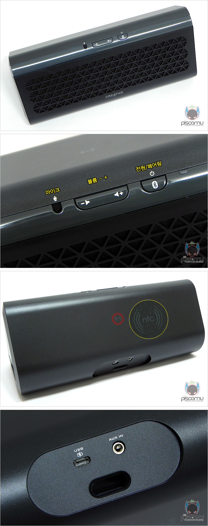 올해는 국내에 더 많은 무선 스피커들이 출시할 예정이라 어느 때보다 치열한 경쟁이 예상되는데, 사운드분야에서 인지도가 있는 크레이티브가 출시한 Airwave는 올해 경쟁 트랜드를 잘 갖춘 제품이라 할 수 있습니다. 블루투스와 NFC를 양쪽 모두 지원하는 동시에 AUX IN 지원도 갖추고 있어 기기 연결과의 호환성이 높다라는 점이 매력 있으며, aptX 코덱 지원으로 무선 연결 상태에서도 선명한 음질을 들려주는 사운드 본질의 매력도 충분히 가지고 있습니다. 또한, 내장 배터리로 총 12시간의 장기 지속으로 휴대성도 지니고 있으며, 충전 포트가 모바일 충전 포트와 동일해 어디에서든 충전할 수 있겠습니다. 한 가지 아쉬운 점이라면, 오디오 케이블 미제공을 지적할 수 있겠습니다. 그래도, 총 4가지 컬러로 출시해 선택 폭이 넓다라는 점과 블루투스는 기본, 블루투스보다 간편한 NFC까지 갖추고 있어 쉽고 빠르게 연결해 어디서든 사운드를 즐길 수 있다라는 점에 포터블 스피커로써의 만족도는 꽤나 높은 제품이라 생각됩니다.