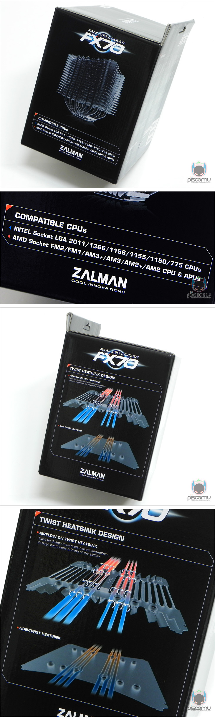 국내 냉각 솔루션 및 종합 하드웨어 업체인 ㈜잘만테크는 작년 CES 2013에서 자사의 첫 팬리스(Fanless) 쿨러 FX100을 선보였습니다. 그리고, 1년 지난 올해 CES 2014에서 잘만테크는 이에 후속 모델을 공개했는데, 바로 ‘FX70’ 입니다. 현재의 프로세서 공정을 고려해 최근 냉각 솔루션 업체들이 TDP 지원을 줄인 팬리스 쿨러들을 선보이고 있는데, 잘만테크 역시 FX100때보다 TDP를 줄인 후속 모델로 FX70을 공개했고, 드디어 출시를 앞두고 있습니다. 그럼, 1년 만에 새 모델을 공개한 잘만테크의 두 번째 팬리스 쿨러 FX70을 만나보겠습니다.
