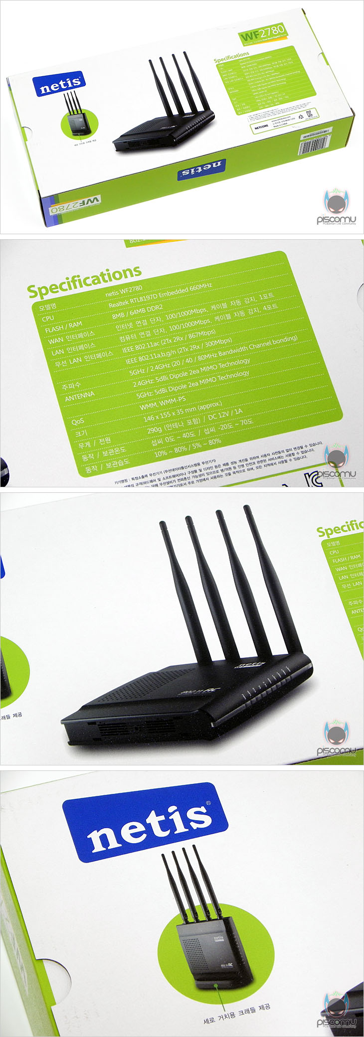 현재 국내 유무선 공유기 시장에 진출한 네티스(http://www.netiskorea.com/)에는 올해부터 본격화되는 802.11ac 규격 지원의 유무선 공유기 모델이 2가지 있습니다. 그 중 WF2710은 바로 앞서 만나보았습니다(http://www.piscomu.com/PC/230886). 그리고, 오늘 네티스에 또하나의 듀얼밴드&802.11ac 모델이자 WF2710보다 상위 모델을 만나보는데, 바로 “WF2780” 입니다. 그럼, 현재 네티스의 가장 최상위 유무선 공유기라 할 수 있는 WF2780은 어떤 모습을 보여줄지, 지금 만나보겠습니다.