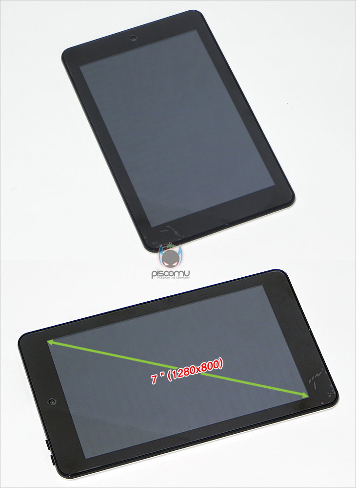 제품을 살펴보면, 앞서 만난 제조사의 제품들과 마찬가지로 패널 액정에는 보호필름이 기본적으로 부착되어 있는데, 굳이 교체를 할 필요는 없으나 기본 필름이기 때문에, 소비자 선택에 따라 결정하면 되겠으며, 제품 후면에는 역시 광택 처리 적용으로 흠집 방지를 위해 제품 초기 시 보호 비닐이 부착되어 있습니다. 액정 크기는 7인치로 레전드 첫 번째 모델인 레전드 S보다 0.85인치가 작습니다. 하지만, 해상도에서는 1280x800으로 레전드 7보다 더 큽니다. 그리고, 패널은 기존 레전드 모델들과 마찬가지로 광시야각의 IPS패널을 적용하고 있습니다. 좀 더 살펴보면, 액정 좌우 여백 베젤 공간은 0.8mm이며, 카메라는 전방에만 지원되는데, 화소는 30만 화소가 되겠습니다. 그리고, 제품의 두께는 8.2mm로 레전드 S보다 약 0.2mm 두껍습니다. 참고로 제품 무게는 240g으로 레전드 S보다 약 60g 가볍습니다. 제품 후면을 살펴보면, 후면 커버 색상은 화이트이며, 가운데 모델명이 새겨져 있습니다. 테두리 부분을 살펴보면, 전면 왼쪽에는 전원, 홈 버튼이 배치되어 있으며, 리셋 내장 버튼도 배치되어 있습니다. 그리고, 바로 오른쪽에는 외부 디스플레이 기기와 연결해 화면 공유를 할 수 있는 HDMI 포트, USB 포트, 오디오 잭이 배치되어 있습니다. 오디오 잭 규격은 3.5mm가 되겠습니다. 그리고, 바로 오른쪽 측면에는 외장 메모리 확장으로 micro SD 슬롯이 배치되어 최대 64GB 용량까지 지원을 해주겠습니다. 끝으로, 후면 맨 하단에는 모델명과 인증을 비롯해, 내장 오디오가 배치되어 있겠습니다.