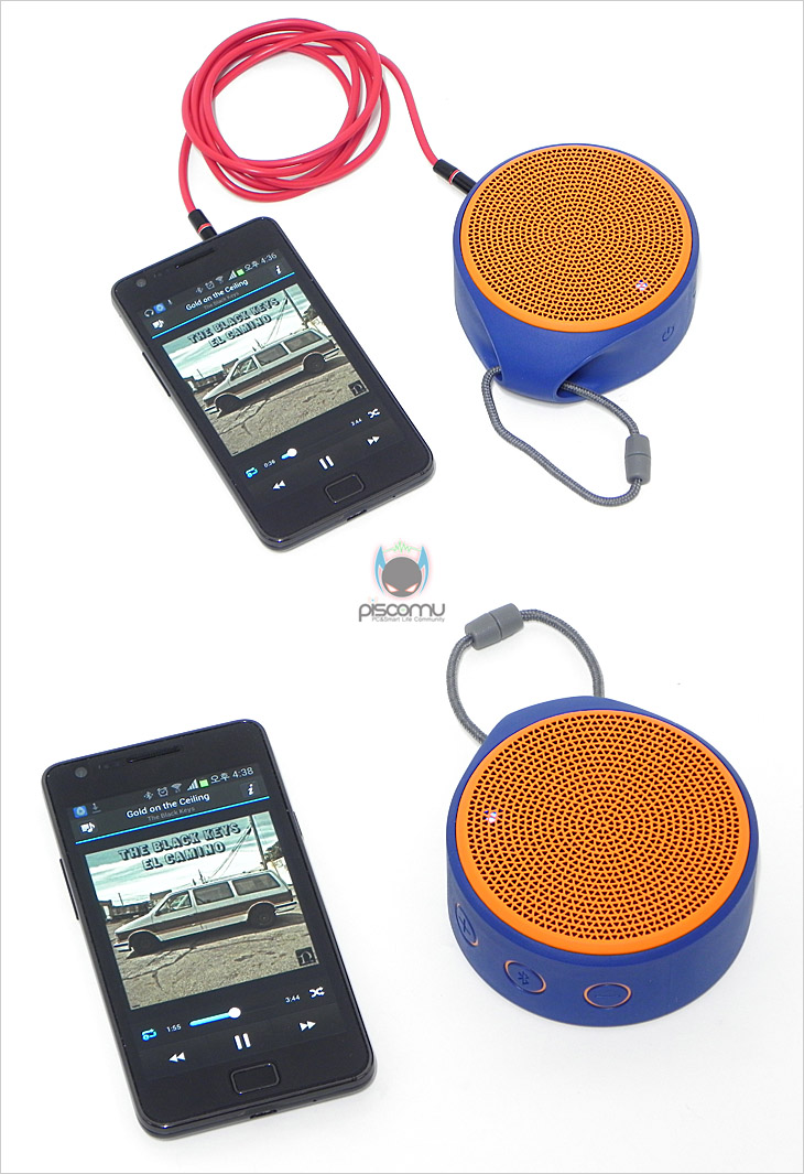 X100의 기본 연결방식은 블루투스지만, 휴대기기에서 블루투스를 지원하지 않는 경우 오디오 케이블로 연결해 역시 사운드를 출력할 수 있게 지원하고 있습니다. 그리고, 어느 방식으로 연결해도 X100 자체의 스피커 볼륨과 휴대기기의 볼륨이 더해지기 때문에 휴대기기에서의 부족한 사운드를 X100으로 더 증폭시켜 들을 수 있습니다. X100을 통해 여러 장르 음악을 들어본 결과, 전반적으로 사운드 출력은 깔끔한 편입니다. 미니 포터블스피커이기 때문에 아주 높은 사운드 출력은 무리지만, 최대 83dBA이면 전화벨이나 지하철 차내 소음정보 되기 때문에, 혼자서 고출력의 사운드를 즐기기에는 무리가 없겠습니다. 음성과 베이스 배경 사운드 모두 어느 한쪽이 강조되기 보다는 적절하게 잘 조화되어 출력되는 느낌이라 대중적으로 소비자들이 레저, 캠핑 등 휴대하면서 즐기기 좋은 아이템이라 생각됩니다.