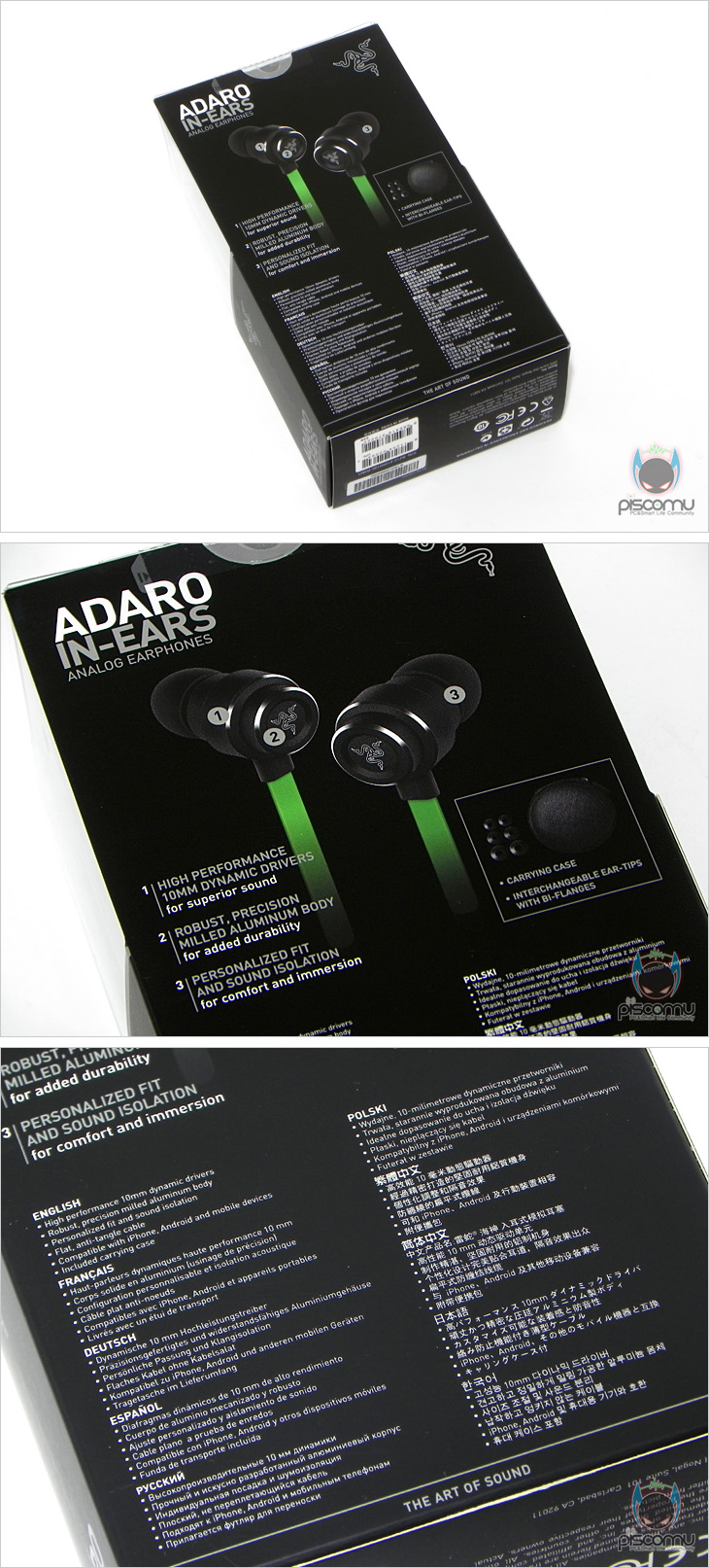 글로벌 주변기기로 유명한 레이저(http://www.razerzone.com/)는 최근 새로운 사운드 라인업으로 Adaro(아다로) 시리즈를 출시했습니다. Adaro는 기존의 레이저 헤드셋이나 이어폰 제품들이 게이밍 컨셉에 맞춰진 것과 달리, 최근 스마트폰/태블릿 PC 시장을 겨냥한 음악감상용 컨셉에 중점을 둔 제품군입니다. 제품군은 크게 헤드셋과 이어폰으로 나뉘어지는데, 헤드셋은 총 3종, 이어폰은 1종으로 오늘은 그 중 이어폰 모델인 “Adaro In-Ear”를 만나보겠습니다.