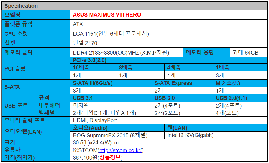 최근 인텔의 6세대 프로세서 스카이레이크가 출시되는 동시에 이를 지원하는 Z170 칩셋이 적용된 메인보드들도 대거 등장을 했습니다. 그 동안에 각 메인보드 업체들은 다양한 시리즈로 다양한 모델을 출시했는데, ASUS 역시 예외는 아닙니다. 특히, 게이밍 브랜드로는 ASUS R.O.G(Republic of Gamers)가 가장 오래된 역사를 가지고 있어, 사용자들이 항상 새로운 칩셋의 메인보드가 나올 때, 가장 주목하게 되는 브랜드도 ASUS의 R.O.G 라인업입니다. 이번 스카이레이크 지원의 Z170 칩셋이 적용된 ASUS R.O.G 시리즈 역시 MAXIMUS VIII 라인업으로 출시가 되었는데, 현재 3개의 모델이 출시된 가운데, 오늘 만나볼 모델은 “MAXIMUS VIII HERO”가 되겠습니다. 그럼, ASUS의 스카이레이크 지원 R.O.G시리즈 MAXIMUS VIII HERO를 지금 만나보겠습니다.