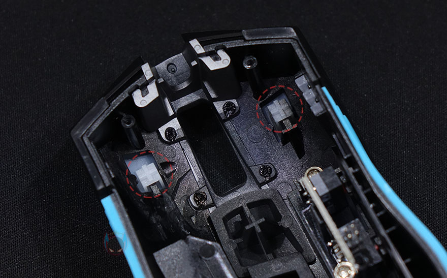 ThunderX3 RM5 게이밍 마우스 내부를 잠깐 살펴보면, 기본 좌우버튼의 클릭 커버 안쪽 디자인은 +자 모양으로 되어있으며, 측면 버튼의 스위치들은 모두 HUANO 스위치이며, 기본 좌우 버튼의 스위치는 이미 언급한대로, 옴론 스위치를 사용했고, DPI 버튼 스위치도 HUANO 스위치를 사용했습니다. 그리고, 광-센서는 PixArt PMW3325, MCU는 SINO WEALTH사의 칩셋이 적용되었죠.