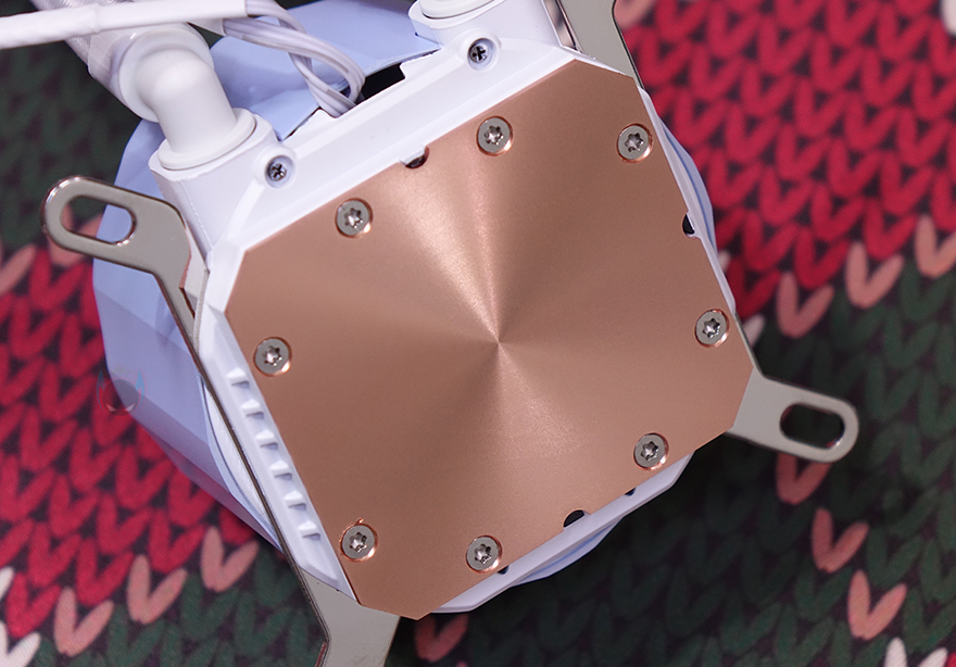 끝으로, CPU와 맞닿는 베이스부분에는 개봉 시 보호비닐이 부착되어 있으며, 사용 전에 제거를 해주면 됩니다. 그리고, 베이스 표면은 구리재질 그래도 매끈하게 랩핑처리가 되어 있죠. 또한, 워터블록에는 인텔(Intel)/AMD 공용 마운트 킷(Mount kit)이 기본 장착되어 있는데, 끼우는 방식이라 쉽게 분리할 수 있습니다.