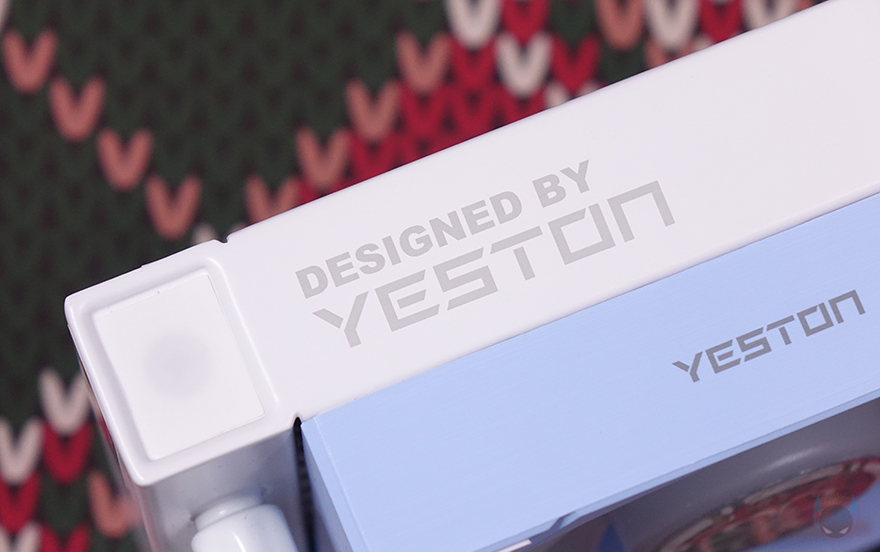 그리고, 팬과 라디에이터 측면을 보면 한쪽에 'Designed by YESTON'이라는 문구를 확인할 수 있습니다. 앞서 시작에서 언급했듯이 기존에 출시했던 쿨러와 케이스 팬들은 모두 Zeaginal에서 디자인한 제품이었지만, 이번 사쿠라 360 일체형 수랭쿨러는 YESTON에서 직접 디자인한 거죠. 또한, 라디에이터 측면 반대쪽에는 사쿠라 특징인 꽃문양도 새겨놨습니다. 팬이 장착되어 있지 않은 라디에이터 반대편에는 PC케이스에 바로 장착하거나 추가로 팬을 장착할 수 있게 나사홀이 처리되어 있으며, 방열핀도 일정한 간격으로 촘촘하게 적용되어 있습니다.
