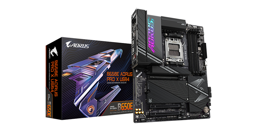 지난달 대만 컴퓨텍스에서 AMD는 라이젠 7000/8000 시리즈 CPU 후속인 라이젠 9000 시리즈 출시 예정을 발표했습니다. 다음 달에 출시 예정인 라이젠 9000 시리즈 CPU는 현재 소비자들이 사용하고 있는 X670(E)과 B650(E) 칩셋 메인보드에서도 그대로 사용할 수 있어서, 소비자입장에서 또 한 번 업그레이드 비용을 줄일 수 있게 되었죠. 특히, 현재도 판매되고 있는 B650E 칩셋 기반의 메인보드 같은 경우에는 라이젠 9000 시리즈 CPU 출시 후 나오게 될 B850칩셋 메인보드와 거의 동일한 사양이라 부가적인 기능들만 잘 갖추고 나오는 B650E 메이보드를 선택하면 가장 현명하다 할 수 있는데, 최근 기가바이트(Gigabyte)는 이런 부분을 발 빠르게 적용해 USB 4.0이 지원되는 B650E 메인보드를 하나씩 출시하고 있습니다. 화이트 콘셉트의 B650E AORUS Elite X AX ICE 메인보드를 가장 먼저 선보였고, 이번에는 엘리트보다 한 단계 상위 라인업이 프로에서 모델이 출시되었죠. 바로, B650E AORUS PRO X USB4 메인보드입니다. 그럼, 기가바이트의 B650E AORUS PRO X USB4 메인보드를 한 번 만나보도록 하겠습니다.