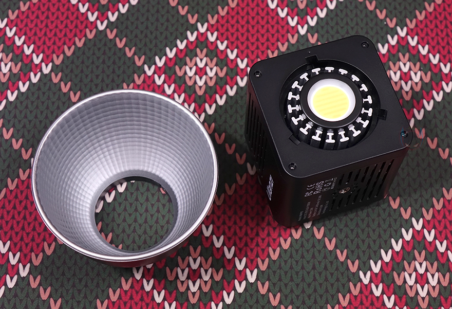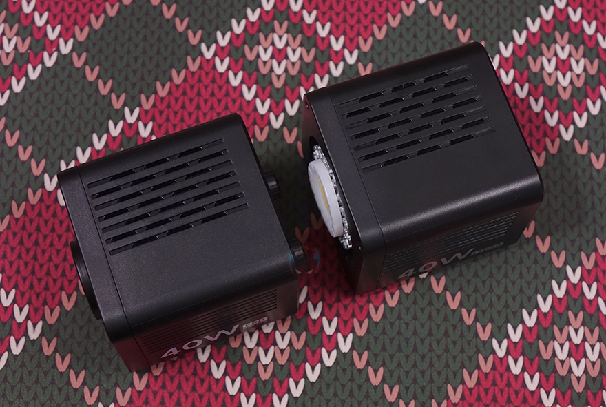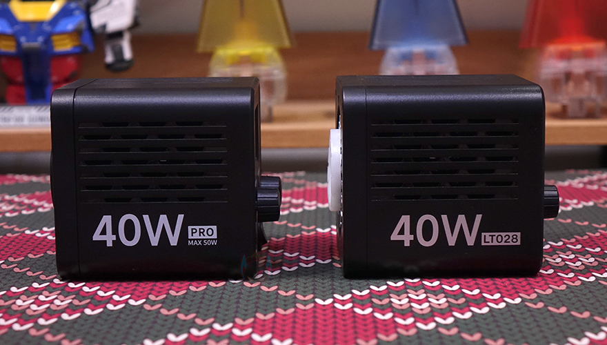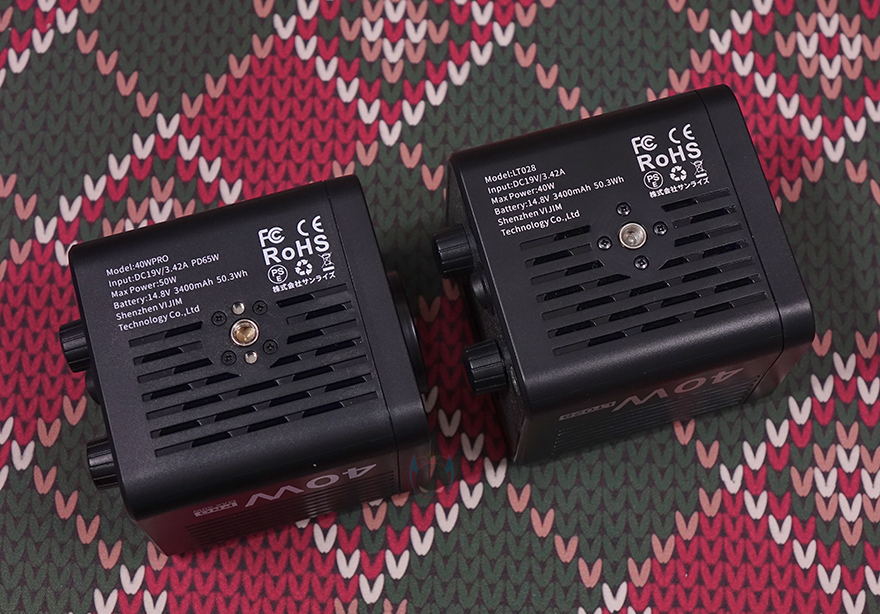 그럼, 본격적으로 울란지(Ulanzi) L023(40W PRO) COB 조명을 살펴보는데, L023 역시 개봉시에는 조명 본체에 반사경이 기본 장착되어 있습니다. 물론, 분리가 가능하고, 앞서 언급했듯이 이전 모델인 LT028과 동일한 디자인과 크기를 가졌기 때문에 반사경과 디퓨저 둘 다 모델끼리 서로 호환이 되죠. L023을 이전 모델 LT028과 비교해 보면, 측면에 문구라든지 글자 크기를 제외하면 상하측면 모두 에어홀 처리의 디자인이 동일하게 적용되어 있습니다. 물론, 하단부에는 삼각대 같은 받침대 장비에 연결할 수 있는 1/4"인치 나사홀도 그대로 적용되어 있죠.