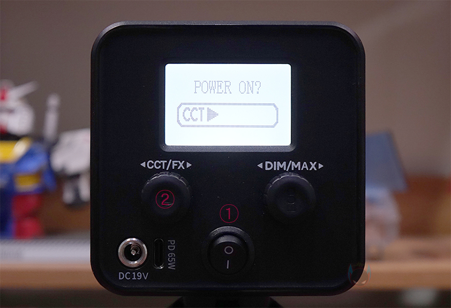 직접, 울란지(Ulanzi) L023(40W PRO) COB 조명을 사용해보면, 함께 제공되는 디퓨저는 이전 모델처럼 반사경에 장착해서 사용하면 되고, 제품 사용법도 LT028과 동일합니다. 일단 전원 스위치로 전원을 켜면 디스플레이 화면에 나온 문구처럼 왼쪽 CCT/FX 노브를 화살표 방향대로 돌려주면 기본값 설정으로 작동되죠. 참고로, LT028과 디스플레이 화면크기는 동일한데, 화면에 나오는 폰트 크기는 더 커져서 육안으로 확인하기가 더 쉬워졌습니다.