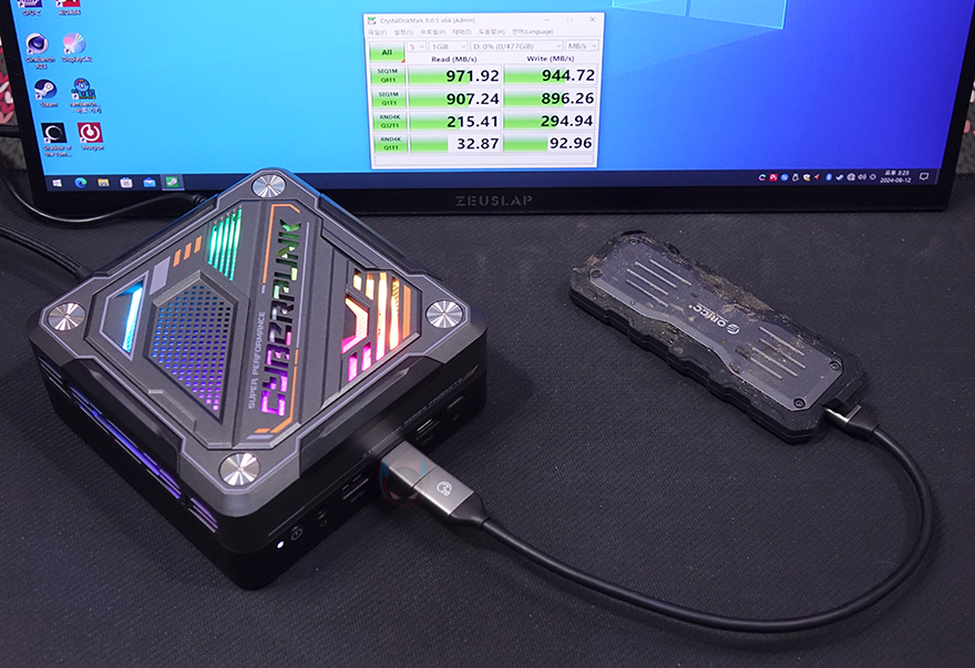 물론, Mecha O20 외장 SSD의 가장 큰 특징은 앞에서도 언급했지만 외부환경으로부터 데이터를 안전하게 보호하는겁니다. 즉, 물이나 흙 또는 낙하 같은 충격에서도 외장 SSD를 보호해서 사용할 수 있게 해 주는 거죠. 실제로 Mecah O20 외장 SSD에 물과 흙, 낙하까지 적용한 후에 PC에 연결했을 때도 정상적으로 인식되고 속도가 나오는 걸 확인할 수 있었습니다. 물론, 보호장치가 적용된 다른 외장 SSD 제품들과 마찬가지로 Mecha O20 외장 SSD 역시 장시간 물이나 흙에 노출되면 보호에 한계가 있습니다. 따라서, 일상생활에서 방수/방진/낙하를 방지해 준다고 보면 됩니다.