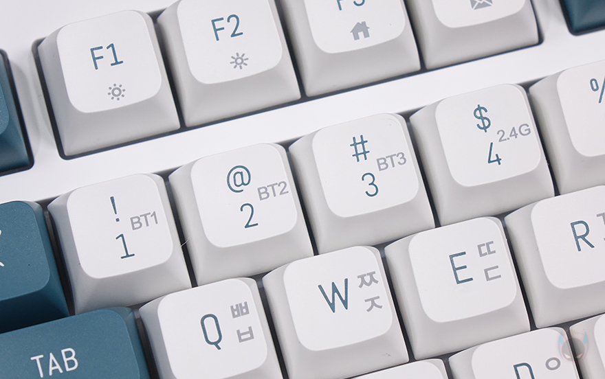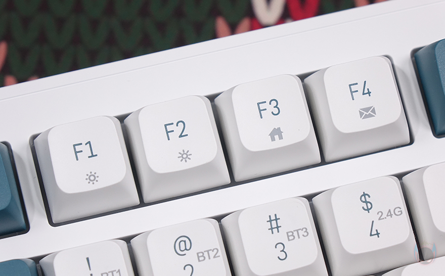 DF98 키보드 역시 Fn키 조합으로 부가 기능들을 지원해주고 있습니다. F1~F2키는 화면밝기조절, F3키는 홈, F4키는 이메일, F5키는 계산기 실행, F6~F8키는 볼륨조절 및 음소거, F9~F12키는 미디어 재생컨트롤 기능을 갖추고 있죠. 또한, 블루투스와 무선 2.4G 연결시 페어링 모드는 숫자 1~4 키까지 지원해 총 4개의 디바이스를 연결할 수 있으며, A와 S키는 각각 윈도우와 맥OS 운영체제 레이아웃 자판으로 전환할 수 있습니다.