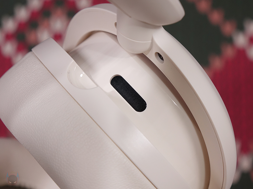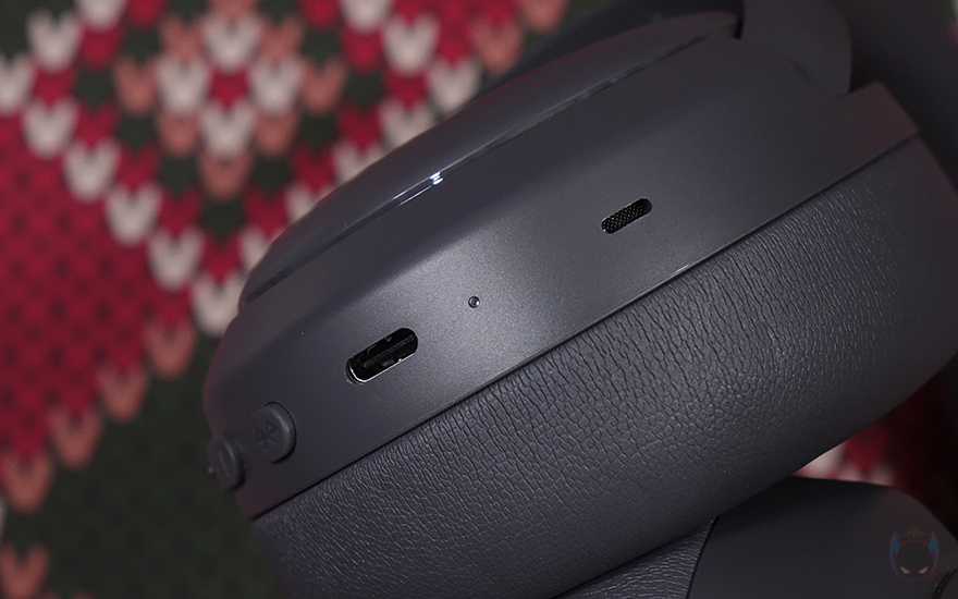 이어-컵(Ear-cup) 부분은 앞서 주요 특징에 표기해 놨듯이 90˚도 회전과 파우치에 보관할 수 있게 접이식을 적용하고 있습니다. 또한, 착용 시 이어 컵 각도를 자동 조절되도록 틸트도 적용했죠. 양쪽 이어컵 바깥쪽에는 ANC와 주변 소음 감지를 위한 마이크홀이 배치되어 있으며, 오른쪽 이어컵 아랫부분에 버튼 및 포트들이 모두 배치되어 있습니다. 버튼에는 가운데 전원 버튼을 비롯해 양쪽으로 볼륨조절 버튼이 한자리에 배치되어 있으며, 바로 옆에는 블루투스 페어링 버튼이 배치, 페어링 버튼 뒤로는 USB 충전케이블과 연결되는 USB-C 포트가 배치되어 있죠. 포트 옆에는 작동 상태를 확인할 수 있는 LED 인디케이터, 그 옆에는 마이크가 배치되어 있습니다. 그리고, 양쪽 이어컵 윗부분에는 사운드 튜닝 덕트가 적용되어 있으며, 이어컵 안쪽 착용 부분의 이어-패드는 헤드밴드와 마찬가지로 가죽 재질에 쿠션을 적용했고, 내부에는 앞서 주요 특징에서 언급했듯이 티타늄 코팅의 40mm 다이어그램 유닛이 탑재되어 있습니다. 끝으로, 기존 제공되는 USB 충전케이블은 1.2m 길이에 USB-C to A 인터페이스를 가졌으며, 유선시에도 사용할 수 있죠.