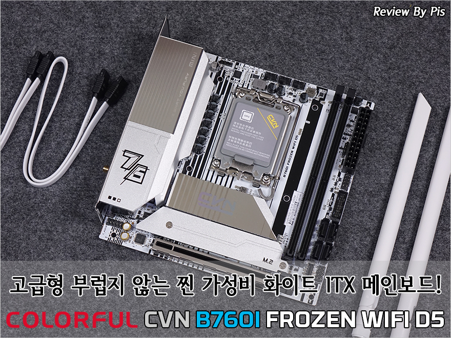 요즘은 화이트 콘셉트로 조립 PC를 맞추는 소비자들이 많아졌죠. 예전에 비해서 PC케이스를 비롯해 다양한 부품들이 화이트 색상으로 나오는 경우가 많아졌습니다. 하지만, 여전히 화이트 콘셉트 조립 PC를 맞출 때 가장 구하기 힘든 부품 중 하나는 메인보드(Motherboard)죠. 물론, 최근에는 ATX나 M-ATX 메인보드에서 화이트 색상을 찾아볼 수 있지만, 작은 PC를 맞출 때 사용하는 ITX 메인보드에선 여전히 화이트 메인보드를 찾아보기란 쉽지 않습니다. 하지만, 이건 어디까지나 국내시장 기준을 말하는 거고, 조금만 눈을 돌려 글로벌시장을 찾아보면 대표적인 화이트 메인보드 라인업을 갖춘 브랜드가 있습니다. 바로, 컬러풀(Colorful)이죠. 컬러풀은 예전부터 화이트 전용 라인업이니 FROZEN을 갖추고 있으며, 새로운 CPU 지원 칩셋이 나올 때마다 꾸준히 신제품을 선보였습니다. 그리고, 최근에는 드디어 FROZEN 라인업에서 ITX 메인보드 즉 화이트(White) 메인보드가 나왔죠. 바로, CVN B760I FROZEN WIFI D5입니다. 물론, 컬러풀이 중국 브랜드이기 때문에 그동안 글로벌시장에서도 모든 제품을 만나보기란 쉽지 않았는데, 최근 알리익스프레스에 공식 스토어(https://ko.aliexpress.com/store/1103792176)가 생기면서 이제 소비자들도 컬러풀의 모든 메인보드를 접할 수 있게 되었습니다. 당연히 CVN B760I FROZEN WIFI D5 메인보드도 해당되죠. 그래서, 이번 시간에는 컬러풀의 화이트 ITX 메인보드 ' CVN B760I FROZEN WIFI D5'를 한 번 살펴보도록 하겠습니다.