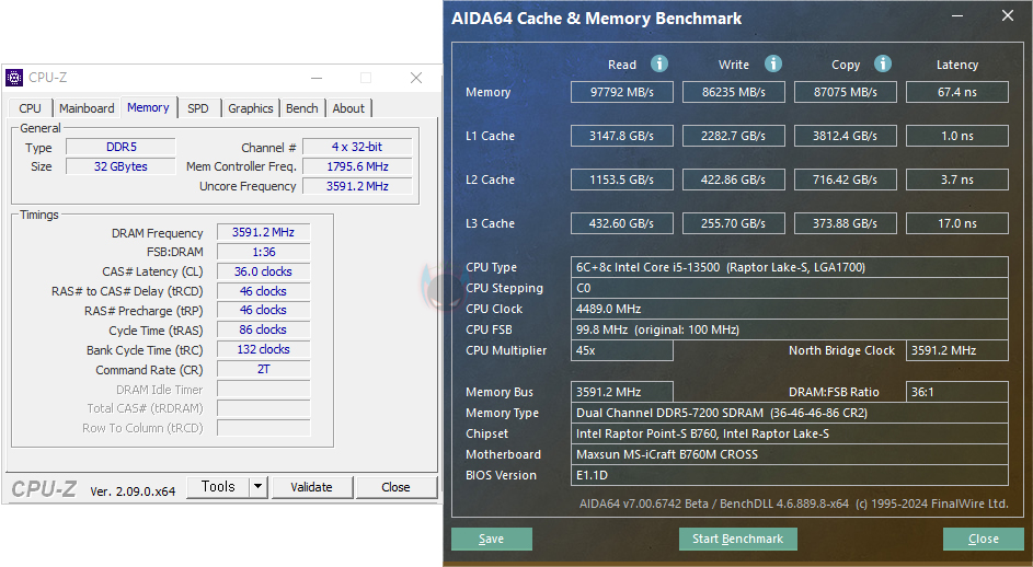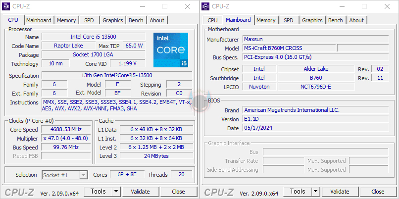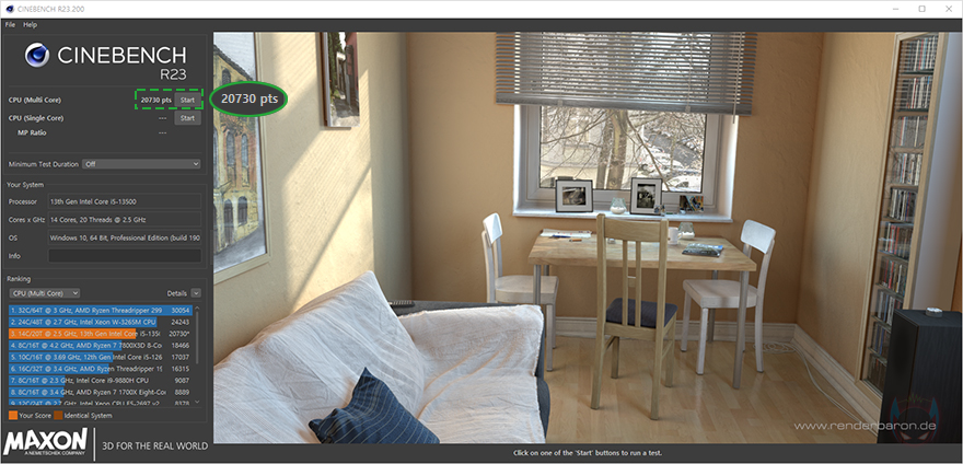 그럼, 이제 부품별 지원의 성능을 확인해 보는데, iCraft B760M CROSS 메인보드는 인텔 12세대부터 14세대 CPU까지 지원하며, 인텔 B760칩셋 기반이기 때문에 CPU 오버클럭은 지원하지 않습니다. 그리고, 최근 K버전에서의 CPU 이슈도 있기 때문에 Non-K 버전의 13세대 i5-13500을 사용해서, 씨네벤치 R23을 실행해 봤습니다. 일반적으로 i5-13500 CPU 같은 경우 씨네벤치 R23에서 평균 21000 점수 근접 내외 결과값을 보여주는데, iCraft B760M CROSS 메인보드에서도 그 결과값을 그대로 보여줘 성능 발휘는 충분히 하고 있다는 걸 확인할 수 있죠.