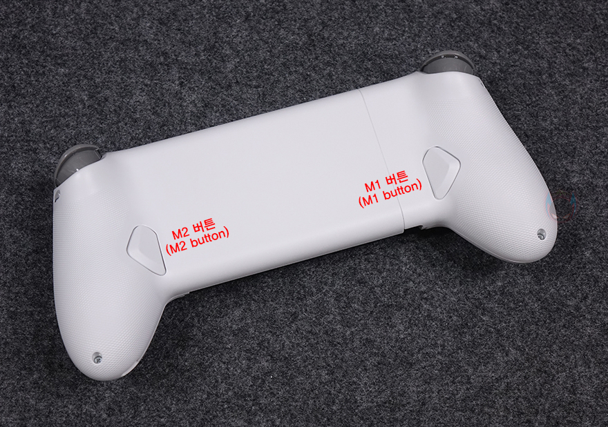 또한, 블루투스 Xbox 모드로 사용할시에는 스마트폰 블루투스 연결을 통해 사용할 수 있으며, 그립 같은 경우에는 일반적인 PC/콘솔 게임패드처럼 익숙한 그립감과 함께 트리거와 LB/RB 버튼에 검지 손가락이, 후면 M1/M2의 맵핑 버튼에는 중지 손가락이 정확하고 자연스럽게 배치됩니다.