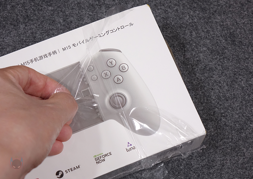 제품 패키지는 박스형태로 박스 전체까지 비닐 밀봉처리가 되어 있어서 소비자 입장에선 판매 제품에 좀 더 신뢰를 가질 수 있습니다. 그리고, 박스 전면에는 풀-샷 이미지로 제품 이미지를 담고 있어서 제품 디자인도 미리 확인이 되죠. 이미지를 통해 양쪽 패드 그립부분이 일반 콘솔용 게임패드와 비슷한 디자인이라는 걸 알 수 있습니다. 그리고, 모델명과 함께 Xboe Game Pass, STADIA, 스팀(Steam), 지포스 나우(Geforce Now), 루나(Luna) 게임플랫폼 호환 표기도 확인할 수 있죠.