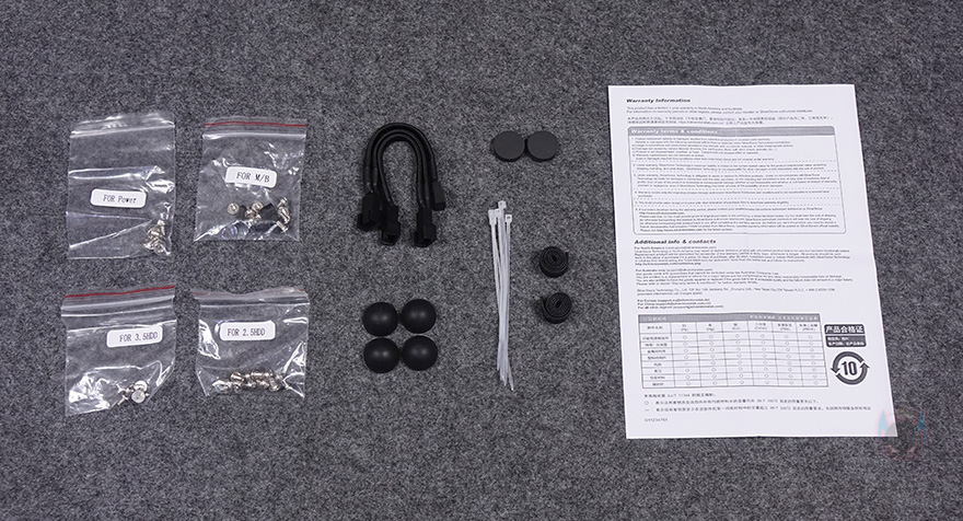 제품 포장은 비닐 포장과 함께 외부 충격 방지를 위해 스티로폼보다 좀 더 완화효과가 좋은 우레탄-폼을 사용했으며, SUGO 17 PC케이스를 비롯한 나머지 구성품들 역시 별도의 비닐 동봉처리가 되어 있으며, 나사 같은 부품들은 각각 분류되어 동봉되었고, 3-in-1 팬 연장 케이블, 케이스 받침대, 그래픽카드 받침대, 소량의 케이블 타이와 벨트로타이, 제품 보증서를 구성하고 있습니다. 참고로, 실버스톤은 친환경정책으로 제품 설명서 및 조립가이드는 홈페이지에서 전자문서로 제공해주고 있습니다.(https://www.silverstonetek.com/upload/downloads/Manual/case/Multi-SUGO17-Manual.pdf)