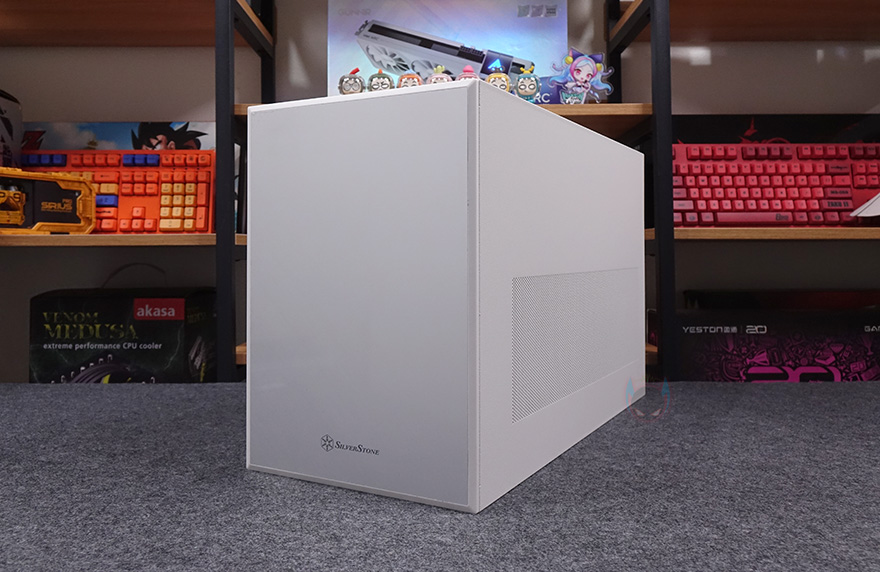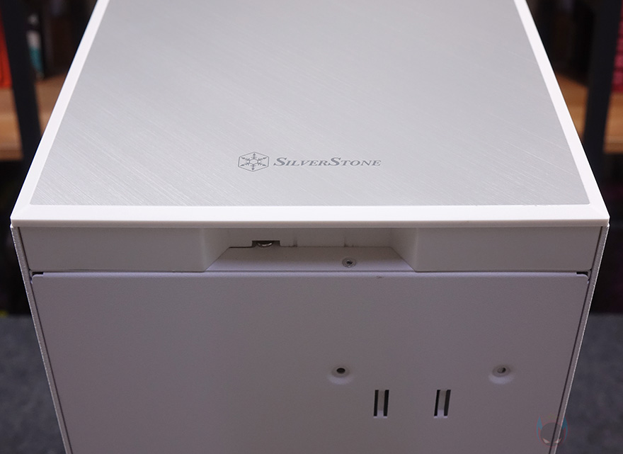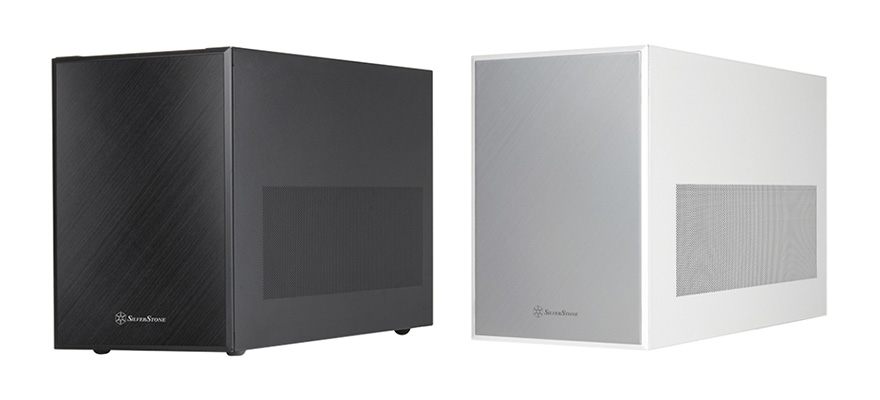 그럼, 본격적으로 실버스톤(Silverstone) SUGO 17 PC케이스 외형부터 살펴보는데, 일단 색상은 블랙(Black)과 화이트(White) 2가지 색상으로 출시가 되었으며, 한눈에 봐도 미들타워보다 절반정도 크기가 작은 미니타워라는걸 알 수 있는데, 콘셉트 문구처럼 큐브 형태를 가졌죠. 화이트 색상 같은 경우 전면 베젤에 실버스톤 브랜드 네이밍처럼 은색 패널을 적용하고 있는데, 개봉 시에는 보호비닐이 부착되어 있으며, 제거를 하면 금속느낌으로 헤어라인 효과를 적용한 것을 확인할 수 있습니다.