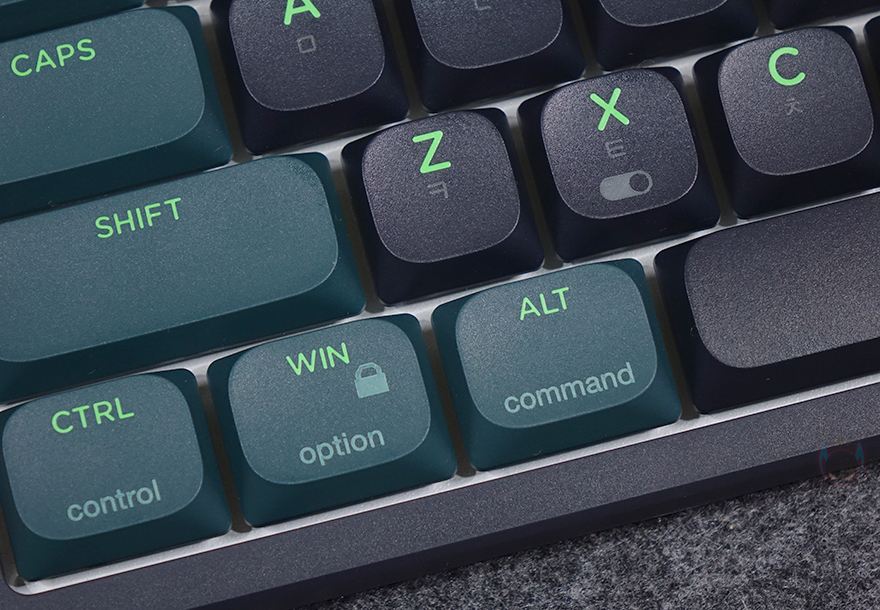 키캡은 로우 프로파일 스위치가 적용되었기 때문에, 일반 키캡보다 낮은 키캡을 사용했으며, 낮은 키캡임에도 PBT 재질에 이중사출 방식을 적용했습니다. 영문과 기호 부분이 여기에 해당되고, 한글과 부가기능 표시는 인쇄로 처리되어 있습니다. 스위치는 로우 프로파일 스위치로 제조사는 후아노(HUANO)이며, 일반 스위치보다 35% 높이가 낮기 때문에 기본적으로 소음이 작을 수밖에 없는데, 스위치 타입도 리니어 적축이라 더 소음이 작다할 수 있습니다. 여기에 제품 상세페이지에서 제공하는 제품 구조까지 참고해 보면, 슬림한 두께를 가졌음에도 흡음패드까지 적용된 것을 알 수 있죠. 그리고, 스위치 안쪽 PCB 기판 부분에는 RGB LED도 적용되어 있으며, 스페이스-바 같은 긴 키들의 스테빌라이저는 체리식입니다.