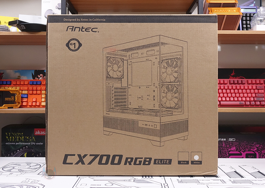 본격적으로 안텍(Antec) CX700 RGB Elite PC케이스 외형부터 살펴보면, 일단 색상은 블랙과 화이트 2가지로 출시되었습니다. 참고로, CX700 RGB Elite와 동일한 디자인에 M-ATX 메인보드 규격부터 지원하는 미니타워의 CX500M RGB도 함께 출시되었기때문에, 소비자가 메인보드 크기에 따라 선택하면 좀 더 합리적인 가격대로 조립 PC를 맞출 수 있죠. 그리고, 개봉 시 전면과 측면 강화유리에는 모두 보호비닐이 부착되어 있습니다.