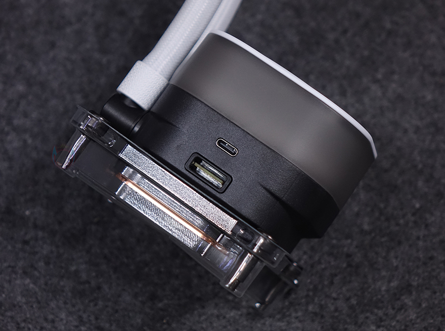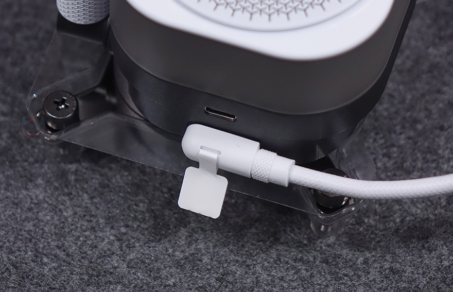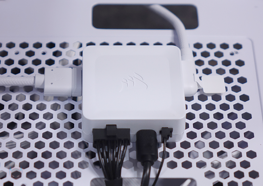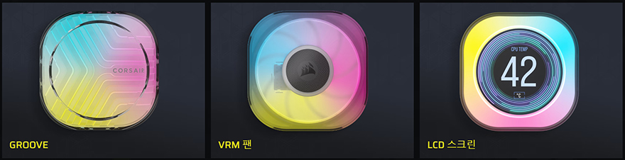 워터블록 역시 iCUE Link 허브와 연결할 수 있게 측면에 액티브 포트가 적용되어 있으며, 바로 위에 USB 타입C 포트는 LCD 스크린 캡을 사용했을 때 이용됩니다. 기본 캡 사용 시에는 제공되는 iCUE Link 케이블만 워터블록 측면에 연결시켜 주면 되죠. 그리고, 라디에이터 팬과 워터블록의 iCUE Link 케이블은 함께 제공되는 iCUE Link 허브에 연결해 주면 되는데, 허브 양쪽 측면에 액티브 포트가 각각 있으며, 허브 아래쪽에는 9핀 포트, 마이크로 USB 포트, 2핀 포트가 있습니다. 9핀 포트는 전원 포트로 제공되는 PCIe 케이블과 연결하면 되고, 마이크로 USB 포트는 iCUE 소프트웨어 연동 포트로 제공되는 마이크로 USB 2.0 케이블과 연결해 메인보드에 연결, 마지막 2핀 포트는 펌프 작동 포트로 역시 제공되는 2핀 케이블을 연결해 메인보드 펌프 커넥터에 연결해 주면 됩니다. 참고로, 허브 후면에는 마그네틱 방식으로 PC케이스 내부에 적절한 위치에 편하게 장착할 수 있습니다.