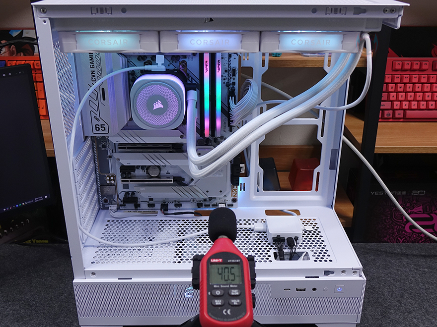 먼저, CPU 온도부터 확인해 보면, iCUE LINK TITAN 360 RX RGB는 수랭쿨러 제품이기 때문에 당연히 공랭쿨러보다는 좋은 쿨링 성능을 보이며, 낮은 온도를 보여줍니다. 전체적으로 동일한 360mm 라디에이터 쿨러들과 비교했을 때 비슷한 온도를 주죠. CPU 쿨링성능은 충분히 만족스럽게 보여준다 할 수 있습니다. 그리고, 팬 속도는 앞서 언급했듯이 RX RGB 팬은 300~2100 RPM 범위로 작동하는데, Load 상황시 최대 속도까지 작동하며, Idle 상황시 최저속도까지 내려갑니다. 이때 팬 소음을 측정해 보면, 최대 속도일 때는 소음이 다소 있지만, 최저 속도일때는 확실히 정숙한 소음 대인 걸 보여주죠. 그리고, CPU 쿨링 성능이 받쳐주는 만큼 CPU 과부하 시 최대 클럭도 높게 작동되는 걸 확인할 수 있습니다.