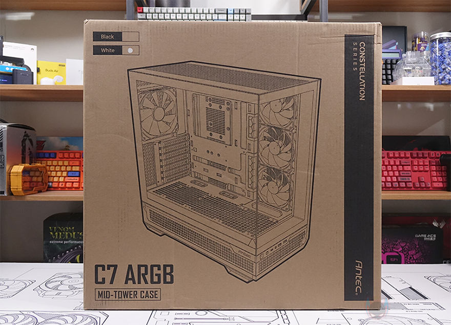 국내 PC케이스 시장에서 오랫동안 활동하고 있는 안텍(Antec)은 현재 PC케이스의 트렌드인 컴퓨터 어항케이스를 올해부터 출시하기 시작했죠. 경쟁사들보다 조금 늦게 시작했지만, Constellation(컨스텔레이션)와 CX 시리즈 2가지 라인업으로 다양한 모델들을 선보이면서 활발히 활동하고 있으며, Constellation 시리즈 첫 모델 C8부터 큰 인기를 얻으며, 다시 한번 전성기를 맞이하고 있습니다. Constellation 시리즈 글로벌시장에 맞춘 라인업이라 품질과 가성비 모두 추구되도록 노력하는데, 첫 모델 C8이 그 모습을 제대로 보여주고 평가받은 거죠. 이후로 C3, C5 모델이 나왔는데, 약간 패턴이 있습니다. 첫 번째인 C8은 듀얼 챔버 구조, 그 다음 나온 C3는 전형적인 미들타워의 어항케이스, 그다음 C5는 듀얼 챔버에 리버스 커넥터 메인보드 일명 BTF 메인보드 지원이 추가되었죠. 그럼, 4번째로 나올 모델은 전형적인 미들타워 어항케이스에 BTF가 추가될 것이라는 예상을 해볼 수 있는데, 바로 이번에 출시가 되었습니다. C7 ARGB 모델이죠. 그럼, 국내 공식수입사 (주)뉴런글로벌을 통해 출시한 안텍의 Constellation 시리즈 4번째 모델 C7 ARGB PC케이스를 만나보도록 하겠습니다.